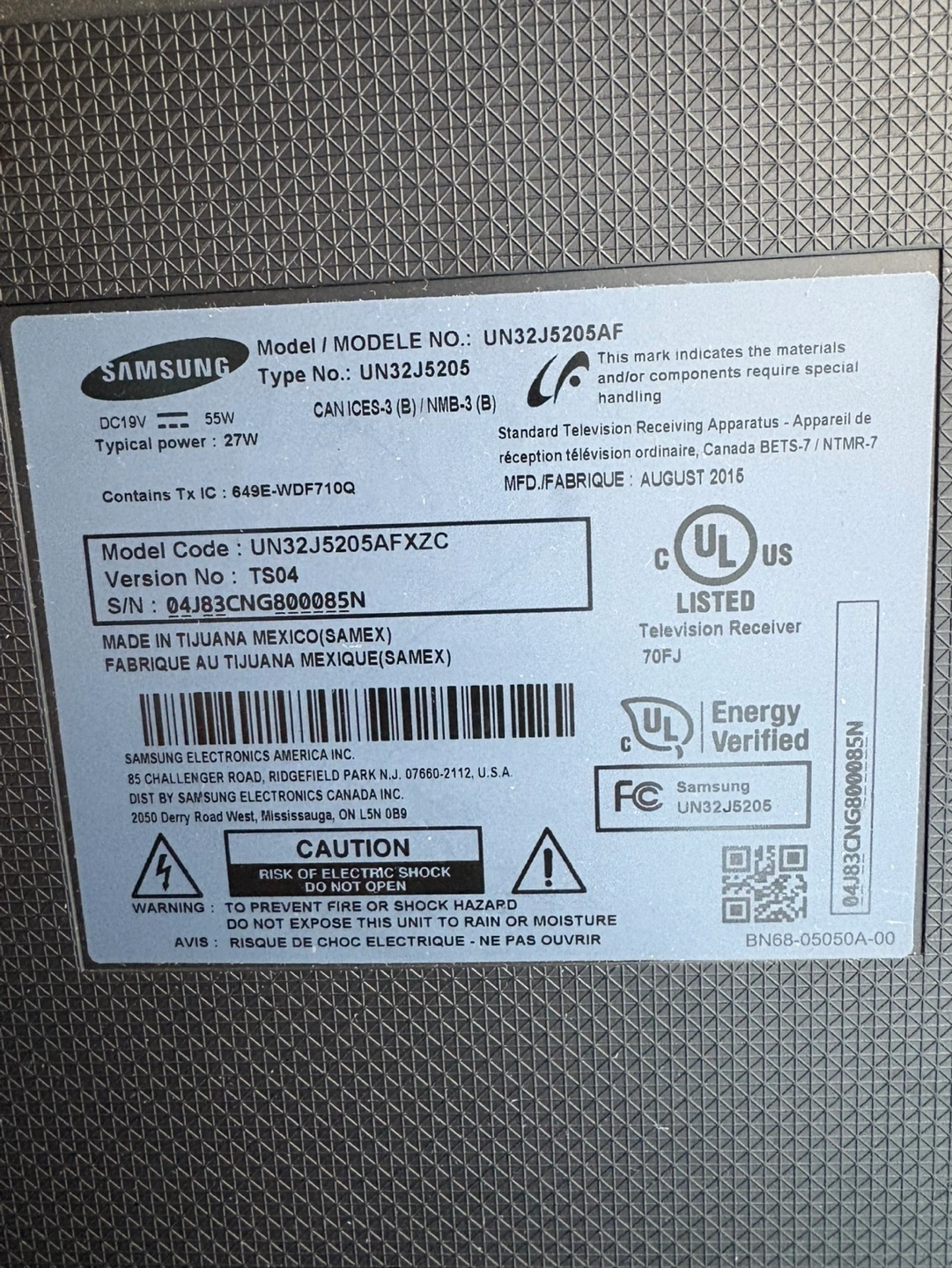 Samsung 32-inch Smart TV Includes power cord and remote control. Only used for less than a year in AirB&B then stored.