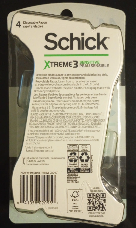 Schick Xtreme 3 Sensitive 3-blade 4 pack