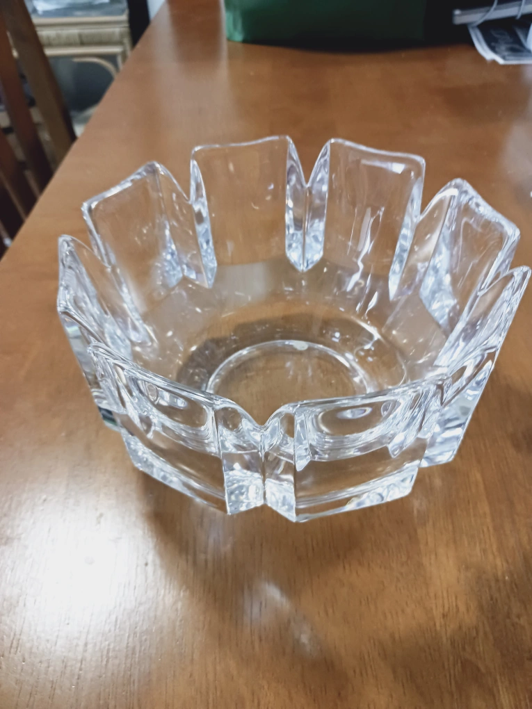Genuine Orrefors crystal bowl with a unique design, signed and numbered. It is approximately 8 inches in diameter.