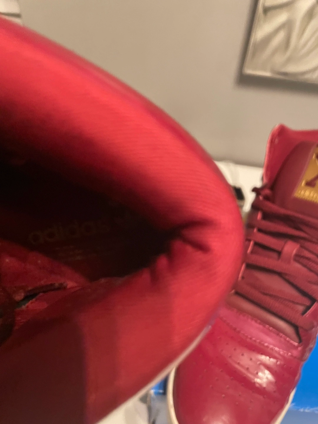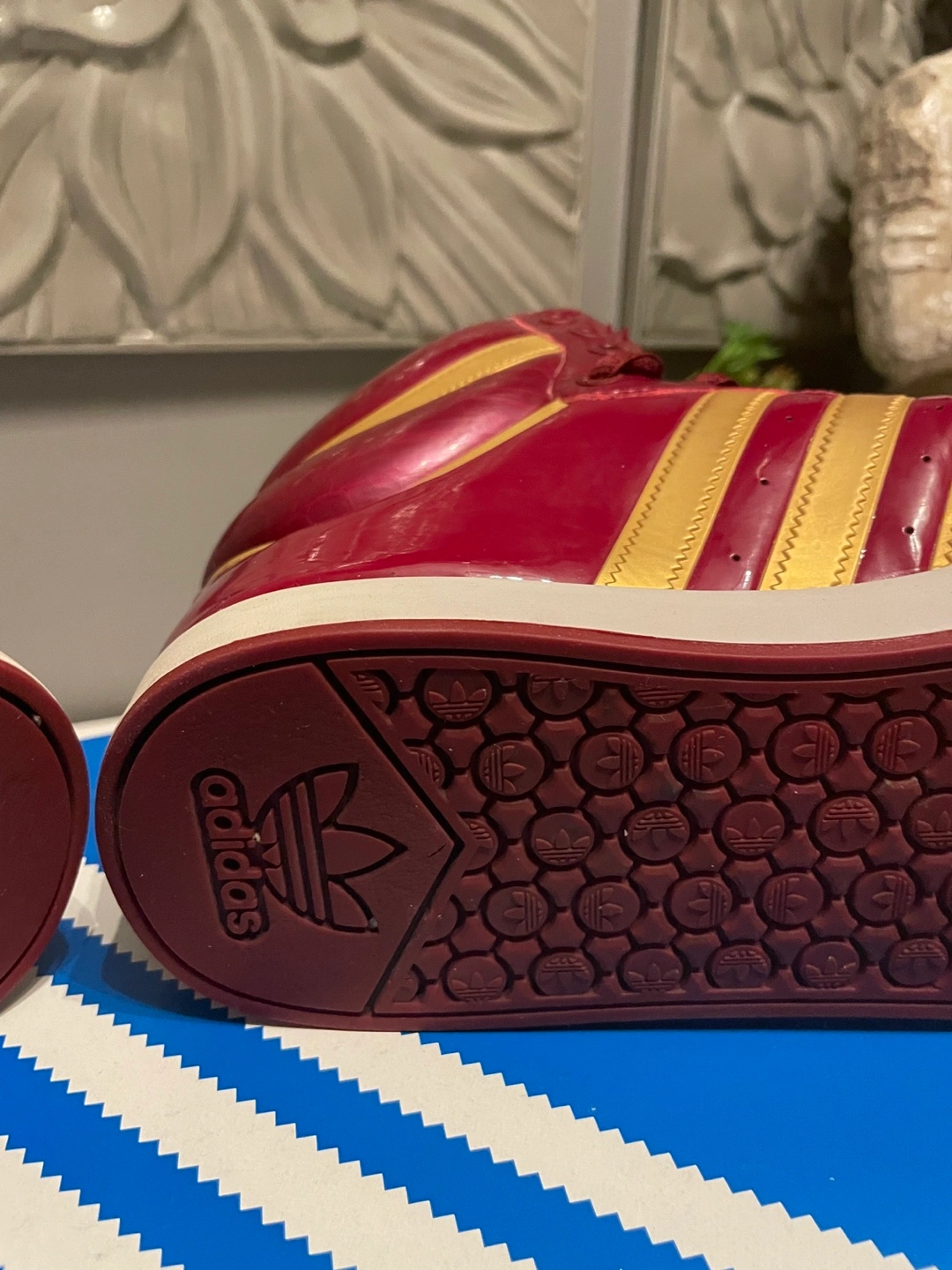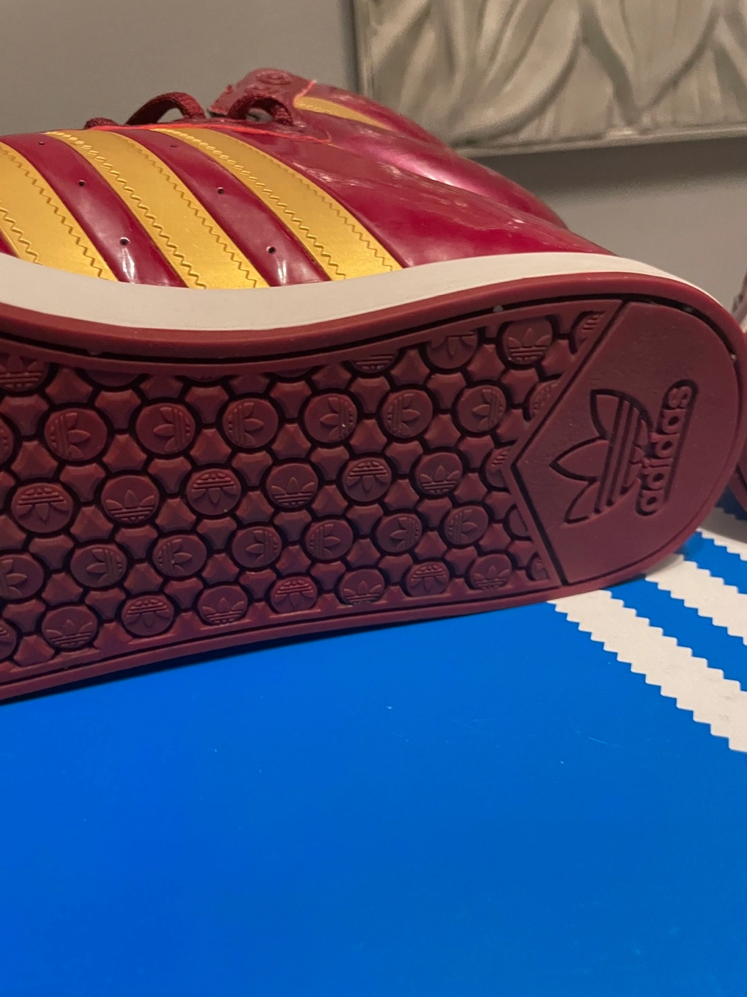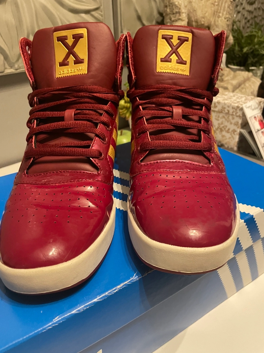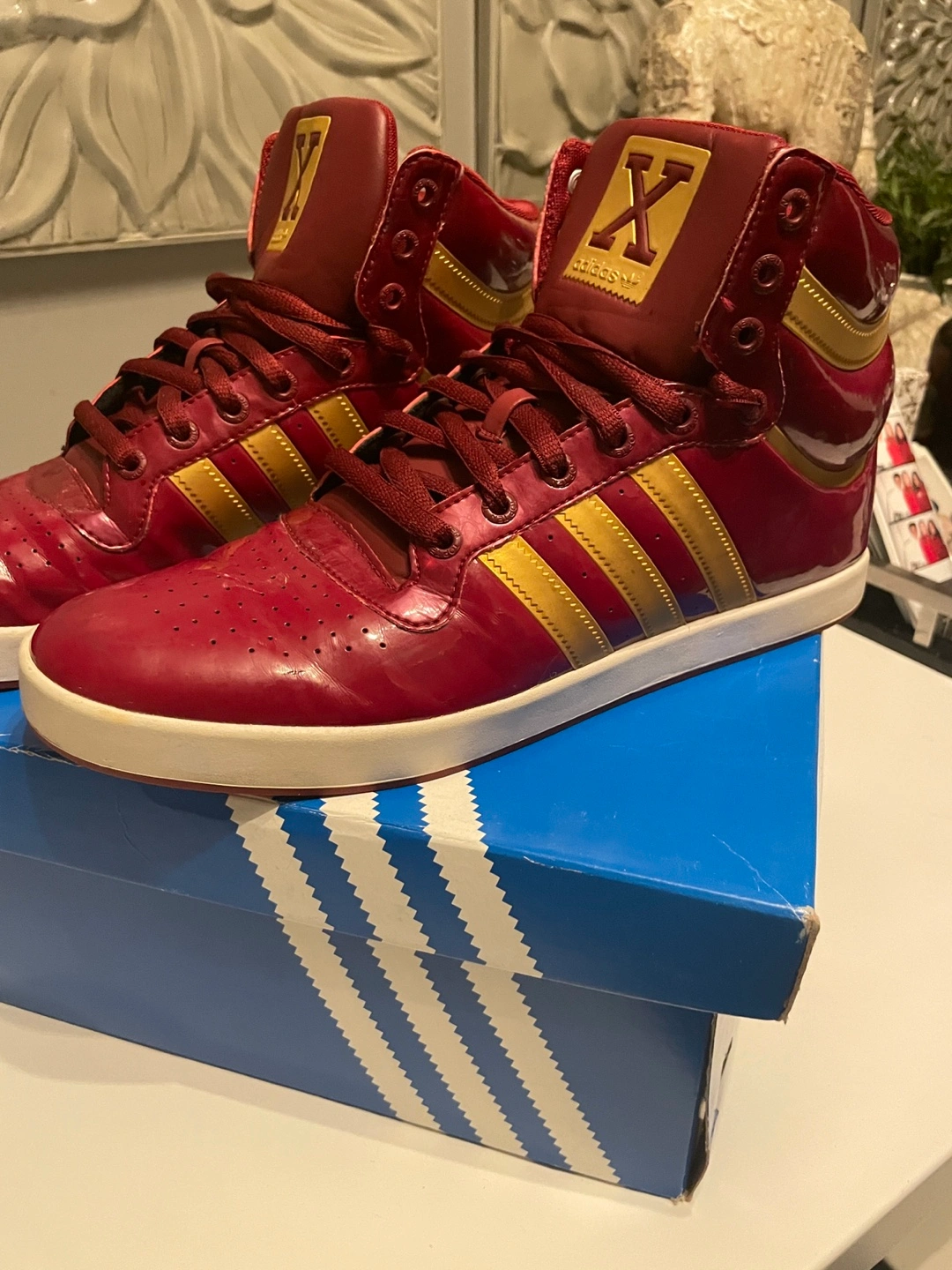 Red and gold high top sneakers. Size 10. Worn but kept in box and in excellent condition.