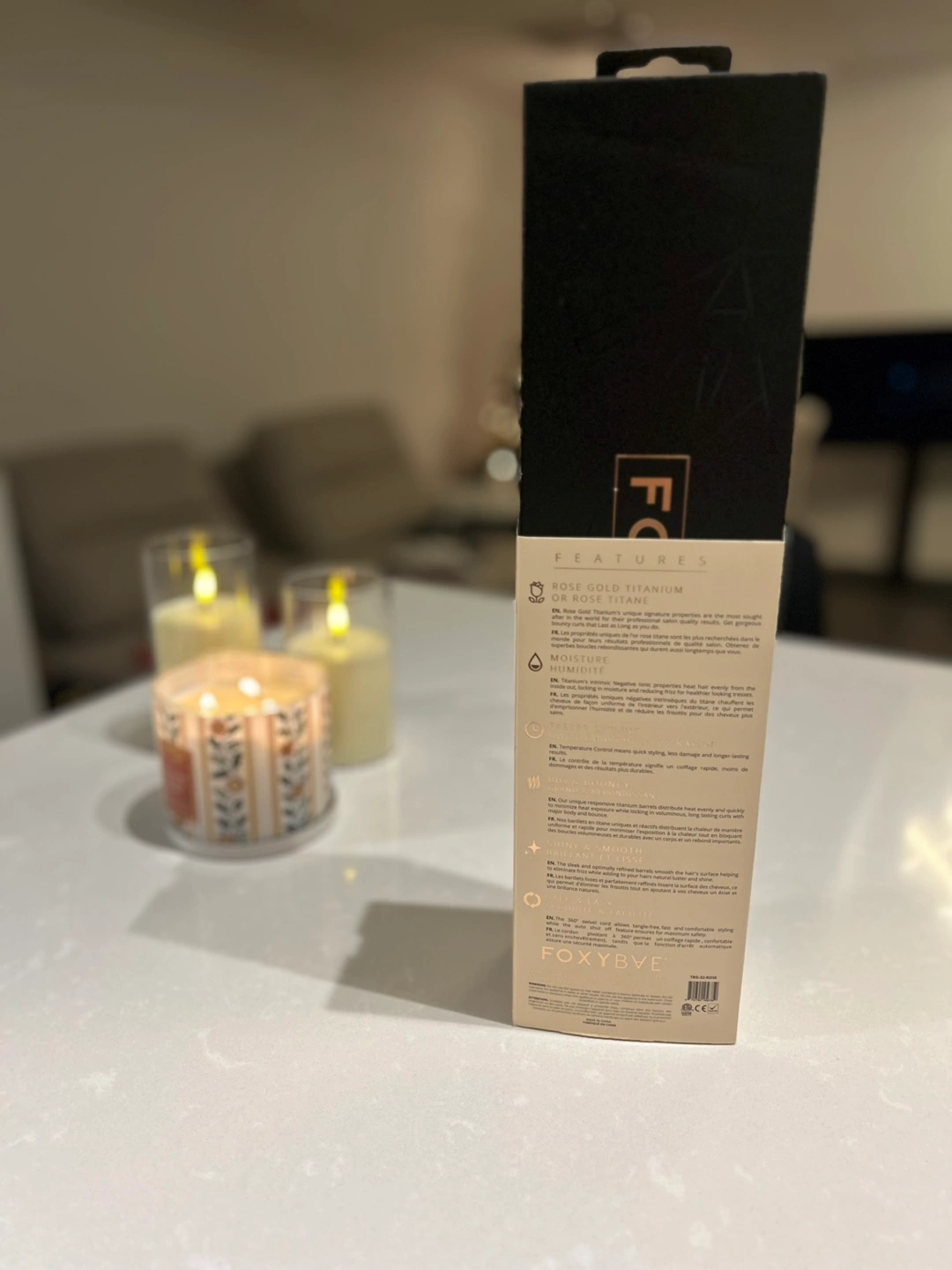 Digital display & Rose gold barrel of 32mm. Comes with original box and a glove. Got it as a gift and only used it once, as I have my Dyson.