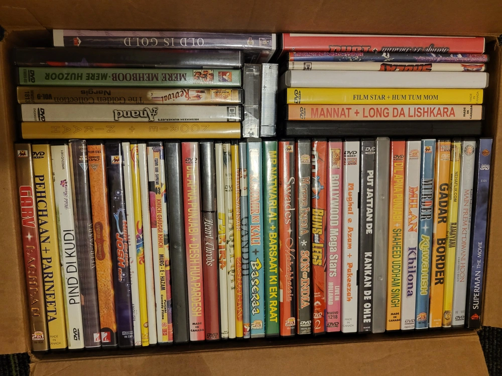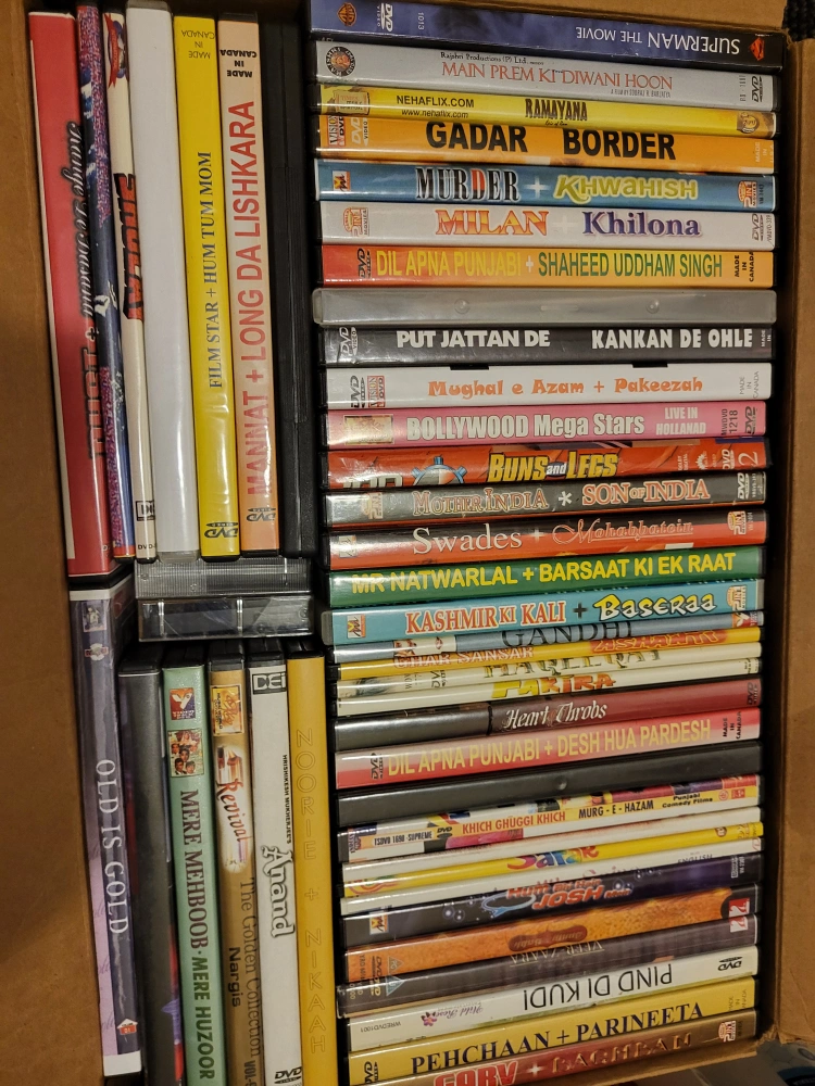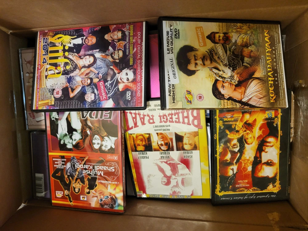 A large collection of Bollywood DVDs. Hindi and Punjabi Includes many popular titles like Hum Tum, Kabhi Khushi Kabhi Gham, and Kuch Kuch Hota Hai and many more famous movies. It also includes some VHS tapes. Great for any Bollywood fans. Indian Bollywood movies DVD Lot Hindi & Punjabi There are lots of movies in Box. Will show u the whole box to choose the best u like. 3 for $5 minimum to buy.