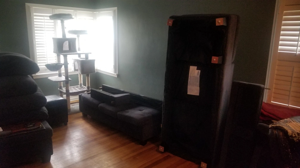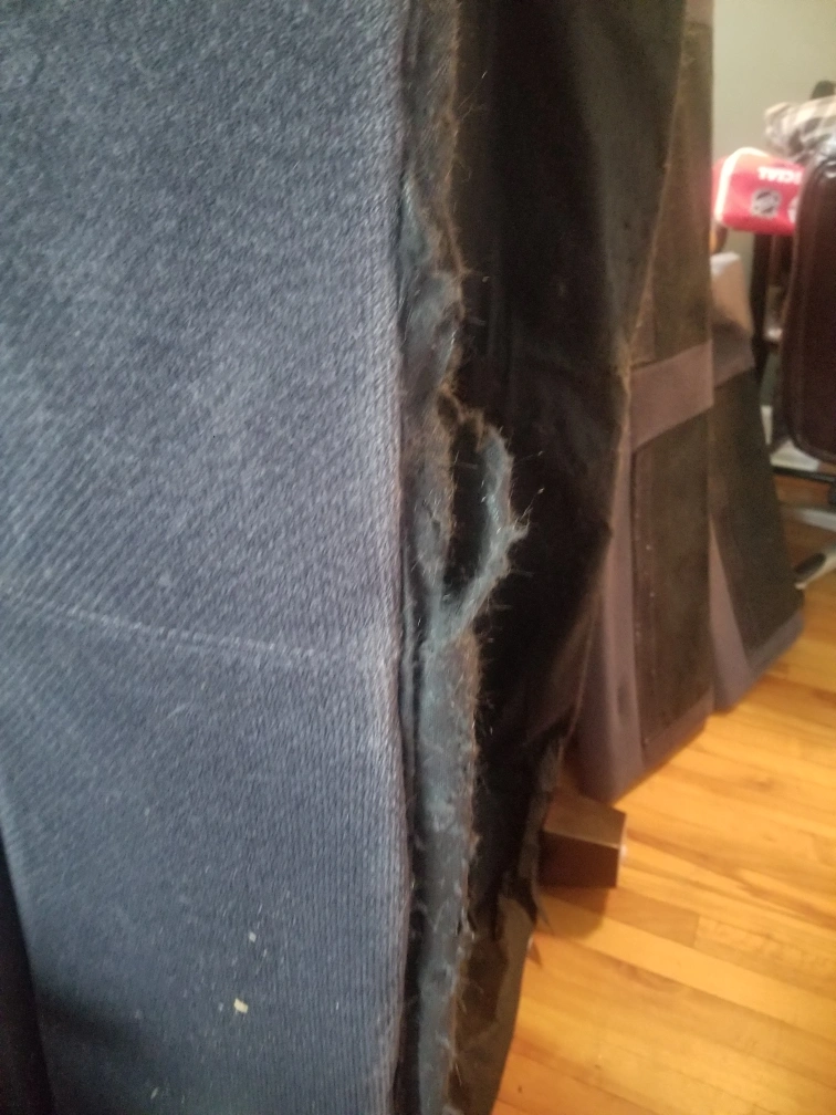 Minor ripping on bottom skirting fabric. Could be stapled up, removed or replaced with no effect to visible part of couch.