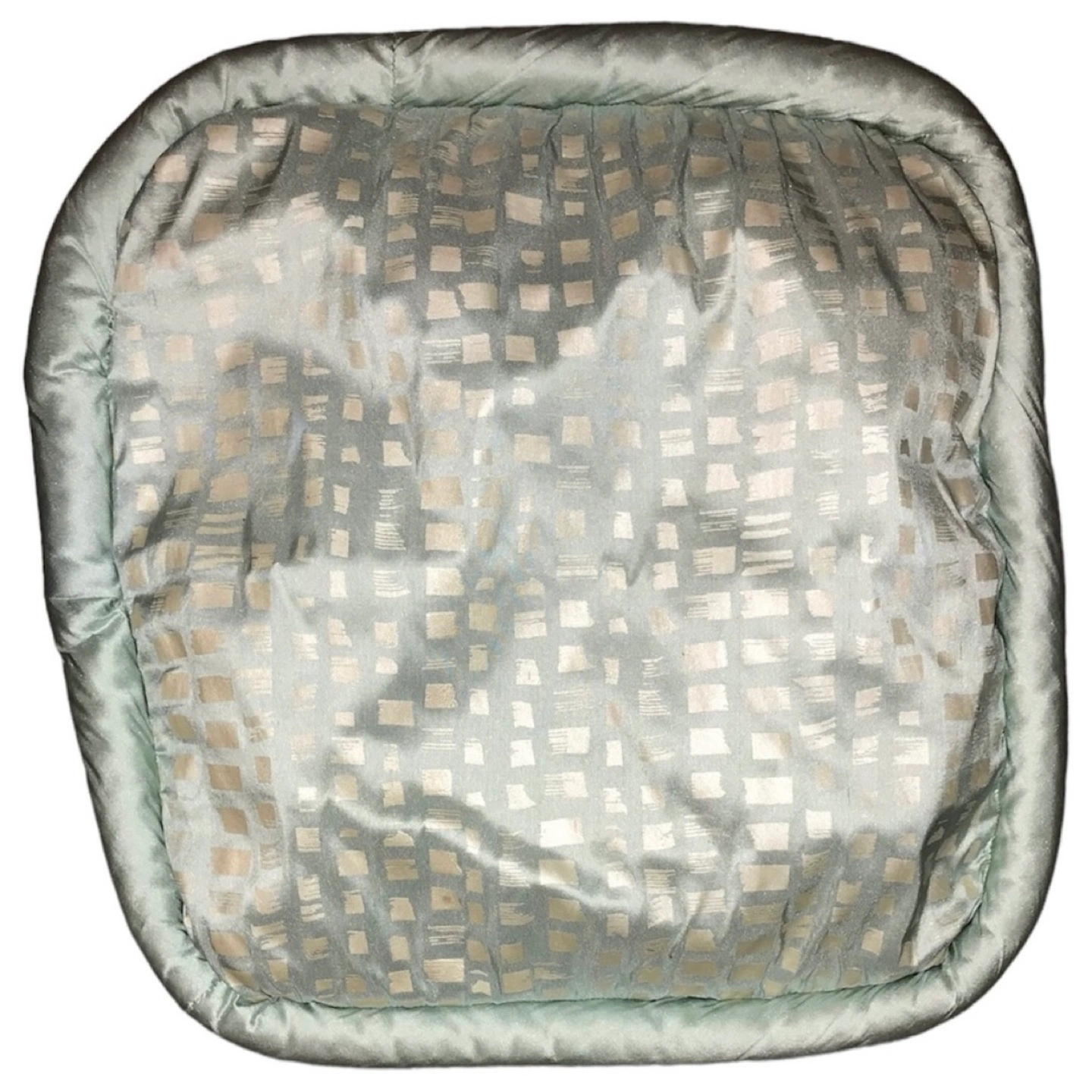 Dimensions: 17.5" x 17.5" (inside), 19.5" x 19.5" (outer edge to outer edge) Material: 100% silk Colours: icy sage, silvery