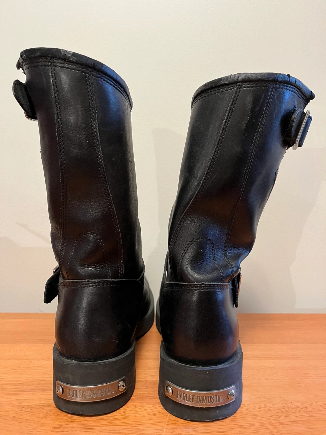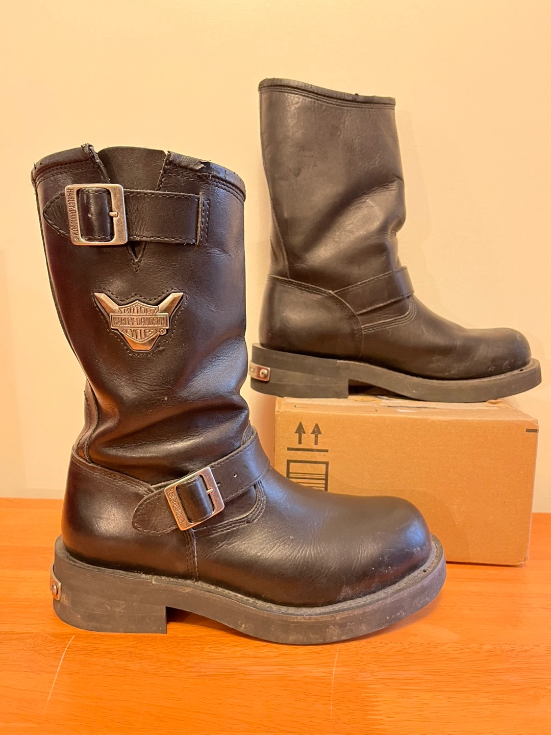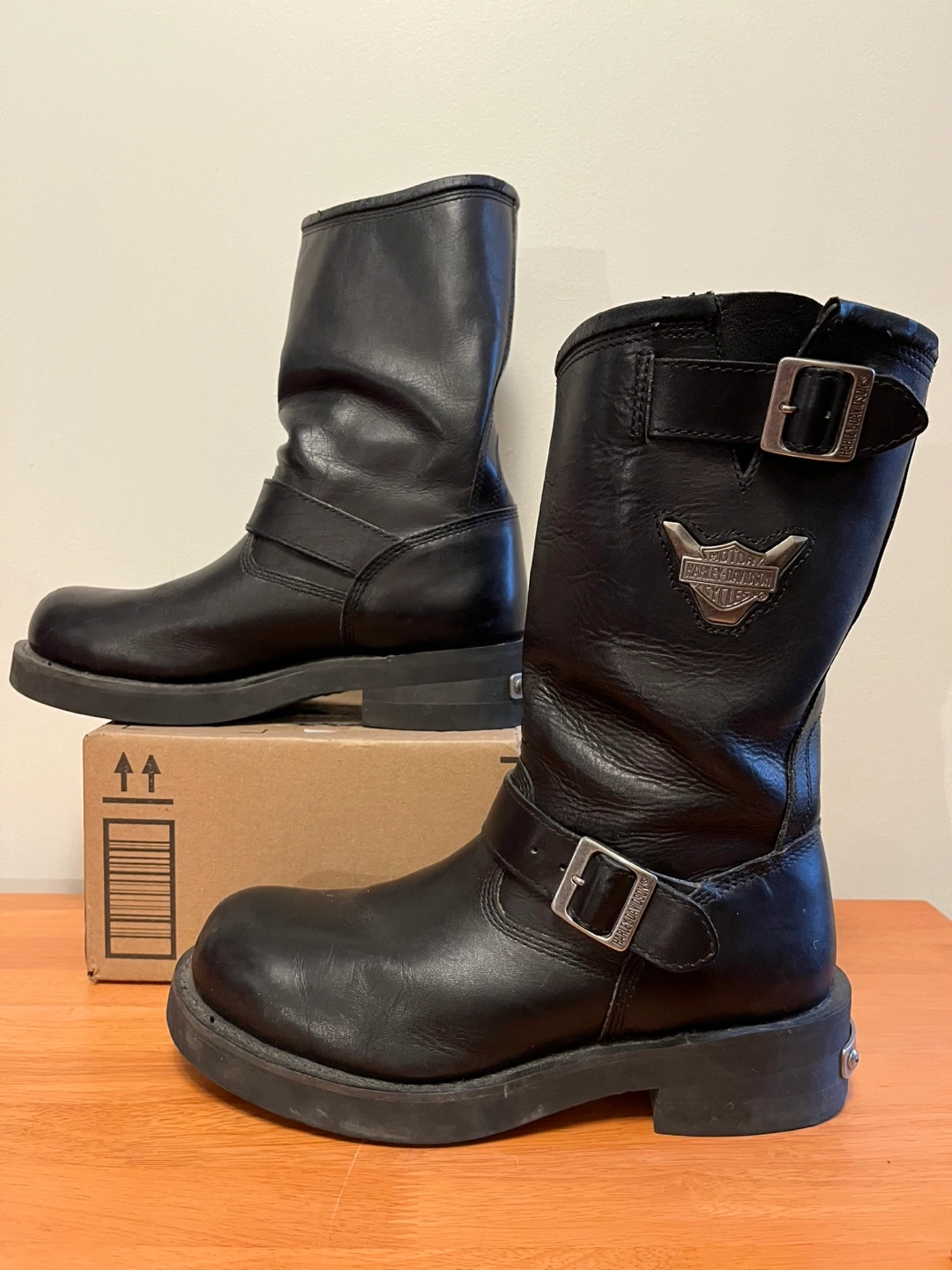 Black leather Harley Davidson biker boots. Good condition. Hardly worn. Been sitting in the closet for ages.