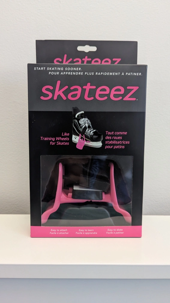Pink training wheels for ice skates. Easy to attach and learn. Suitable for beginning skaters. Includes rubber wedges.