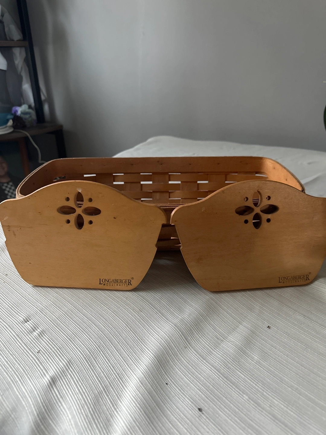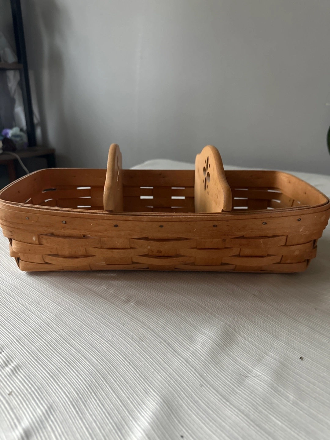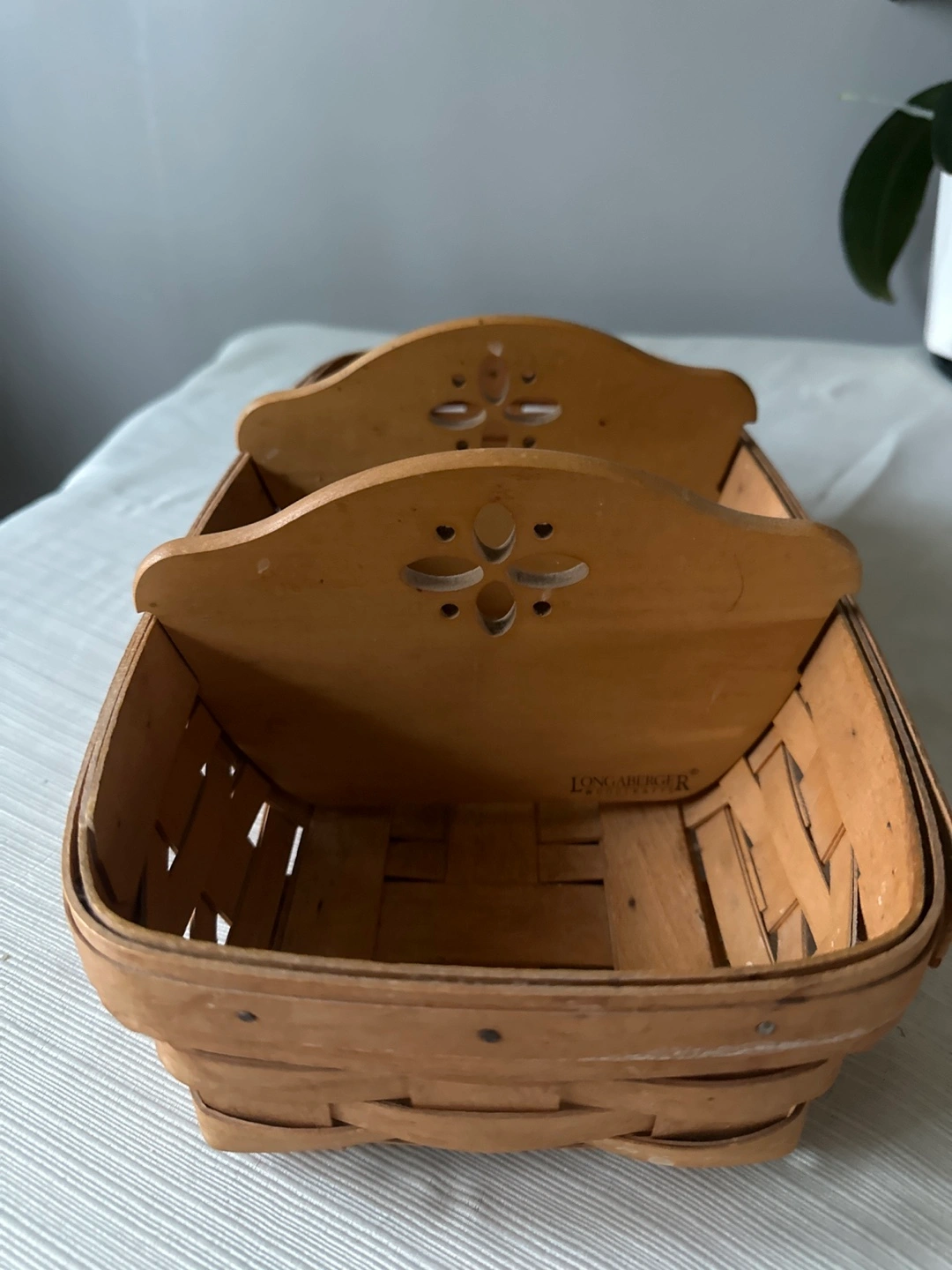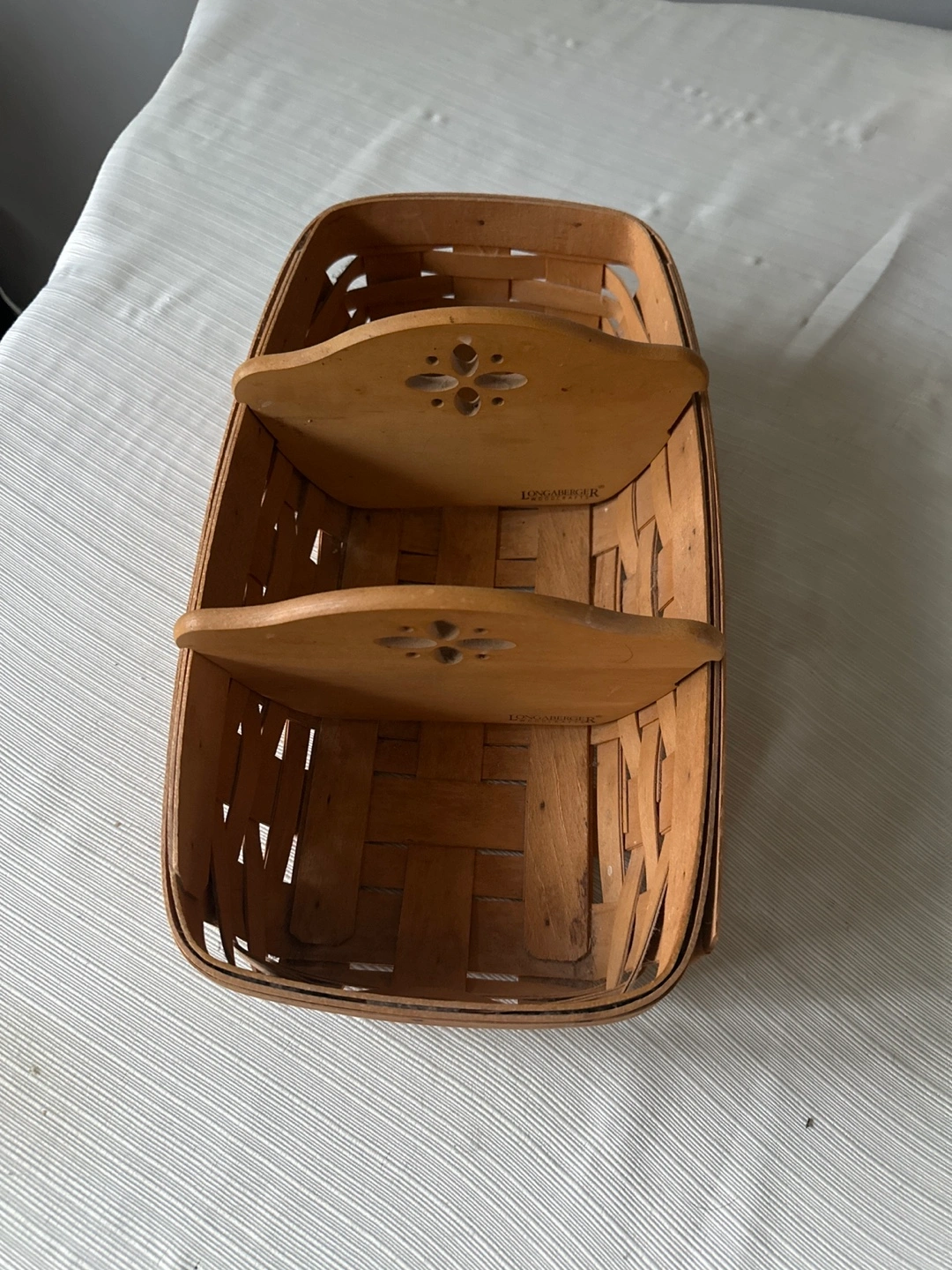 Longaberger small divided basket. Wood basket with two dividers. Perfect for organization or display.