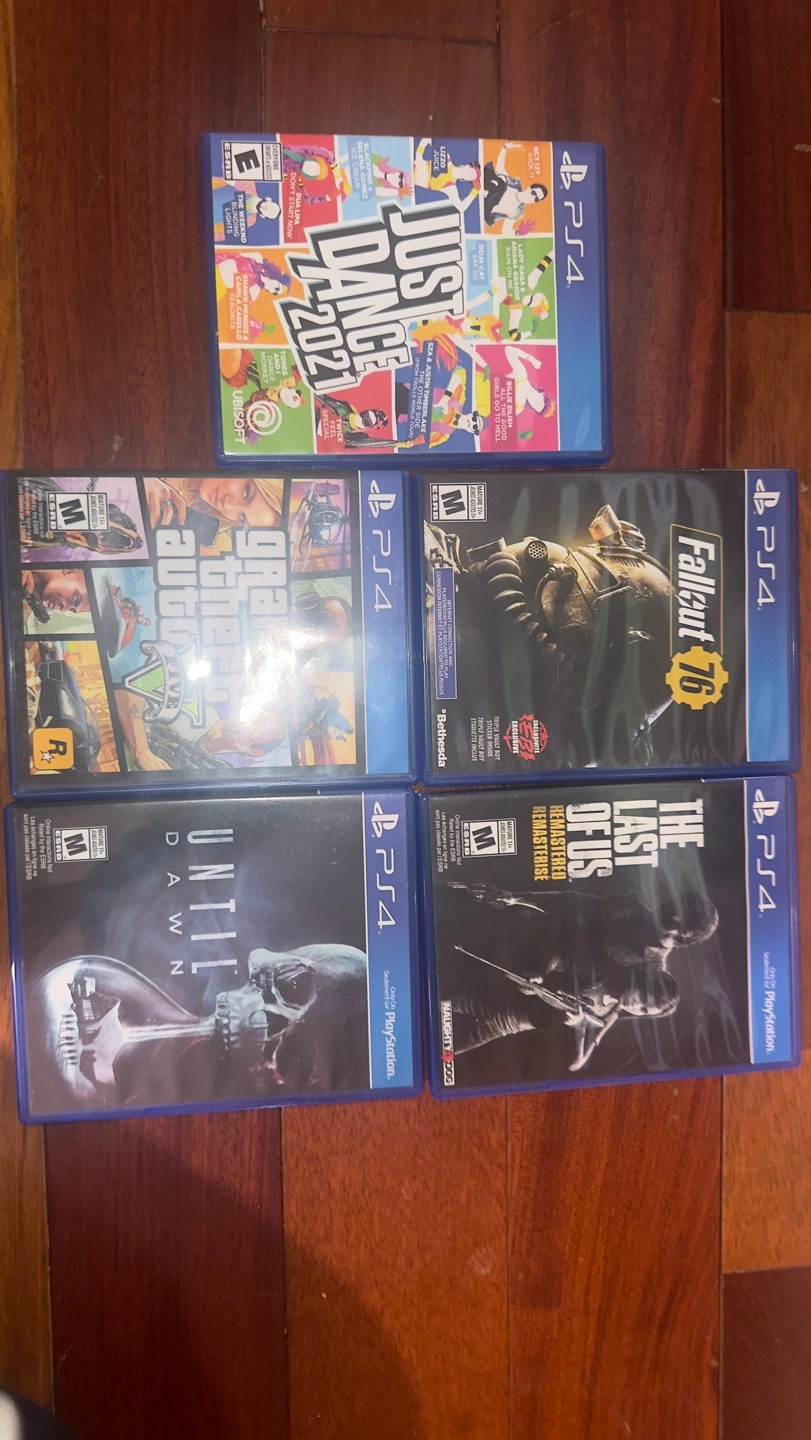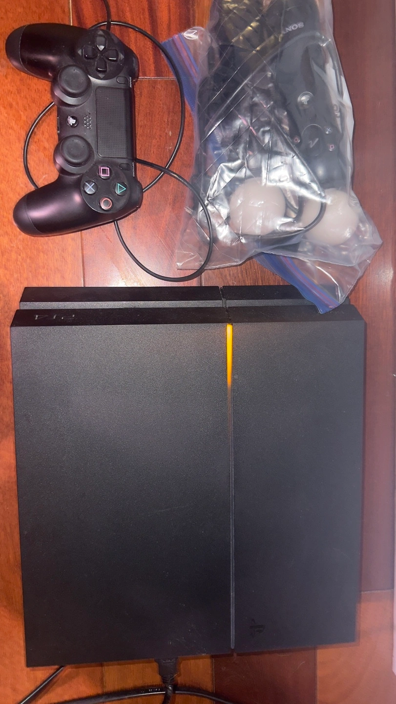 Pre-owned PlayStation 4 500GB console. Includes one controller, 2 extra move motion controllers, and five games. Great for casual gamers. Barely used
