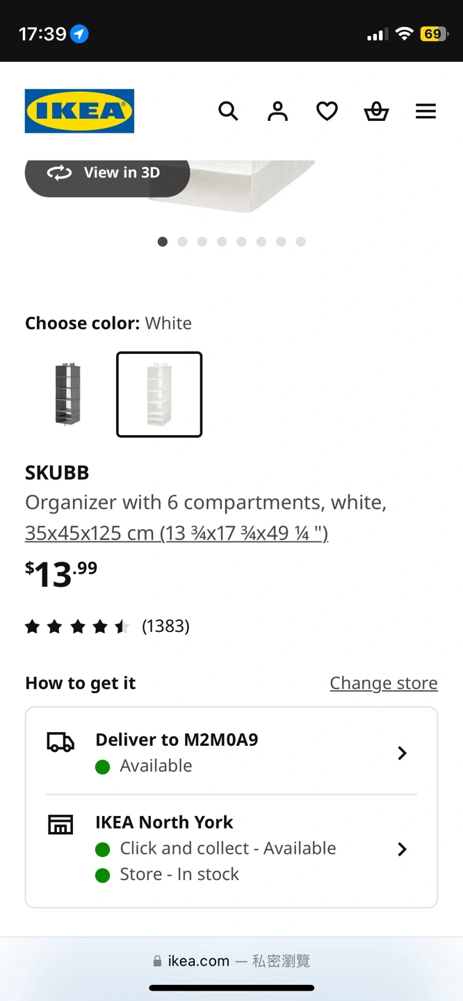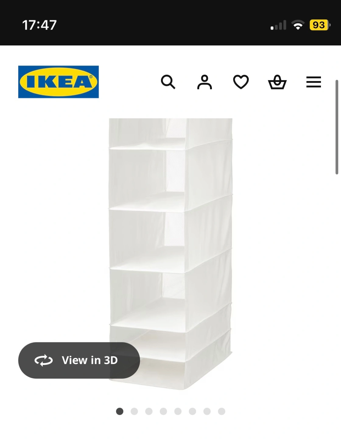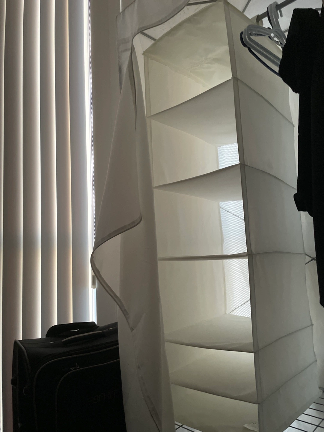 1000+White fabric organizer. Six compartments. Some minor marks. Good condition. Dimensions: 35x45x125 cm (13 ¾x17 ¾x49 ¼").