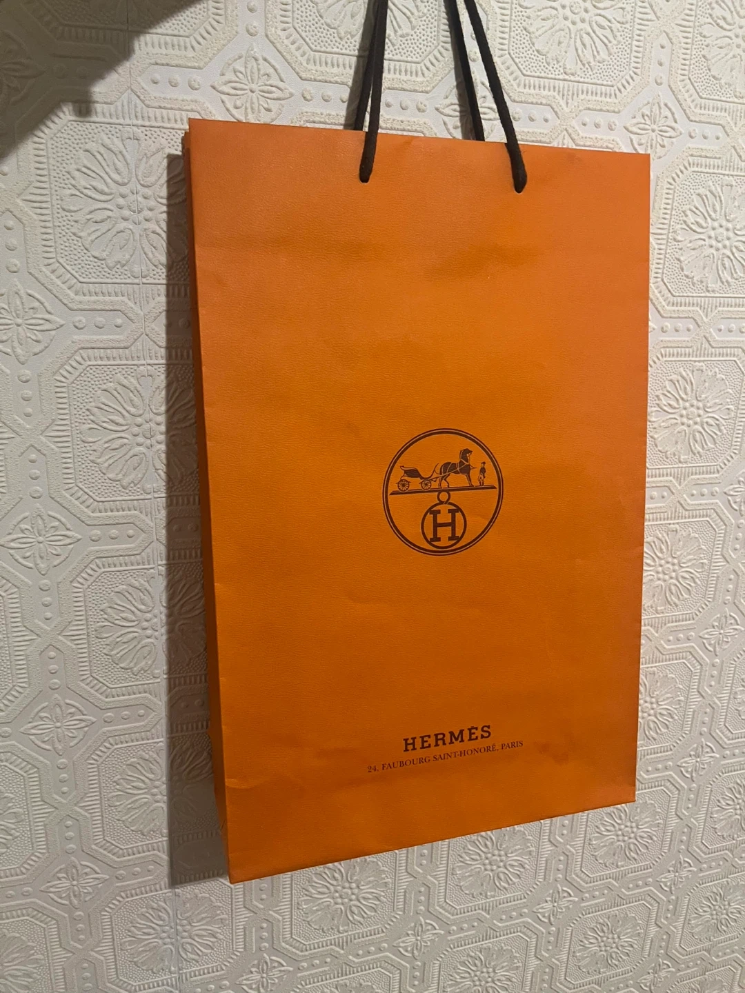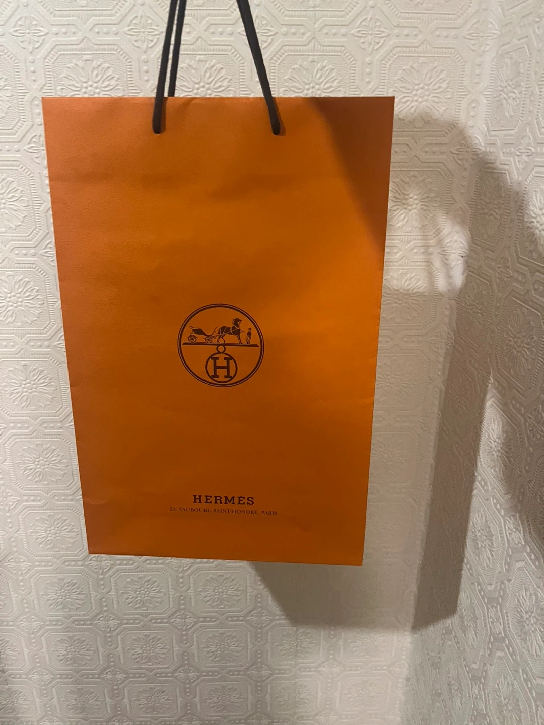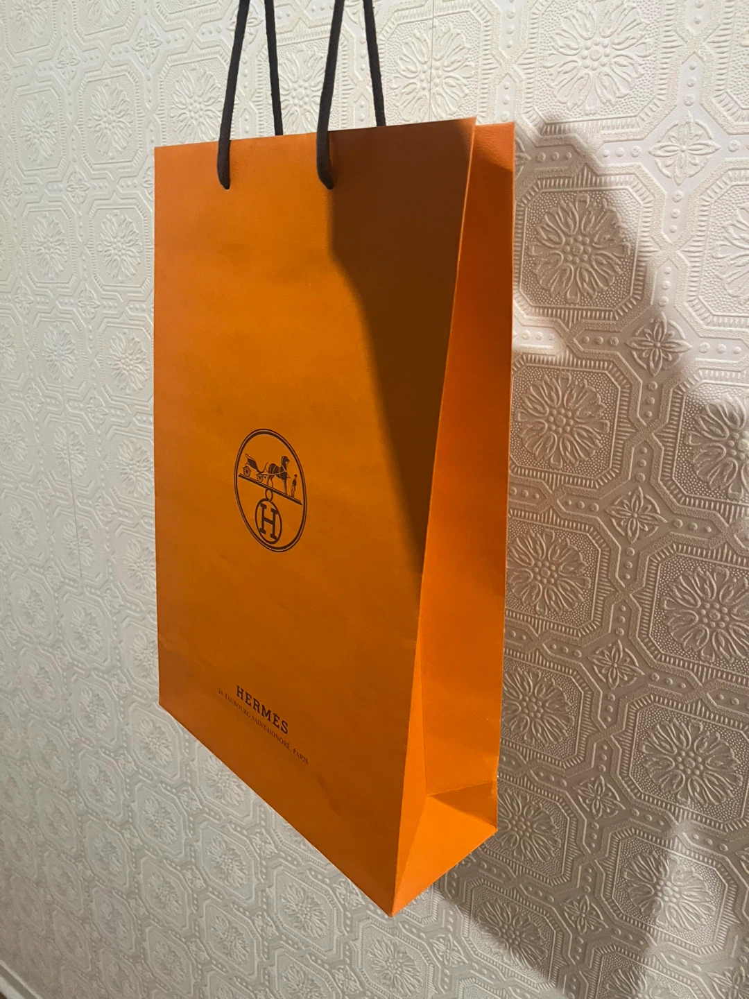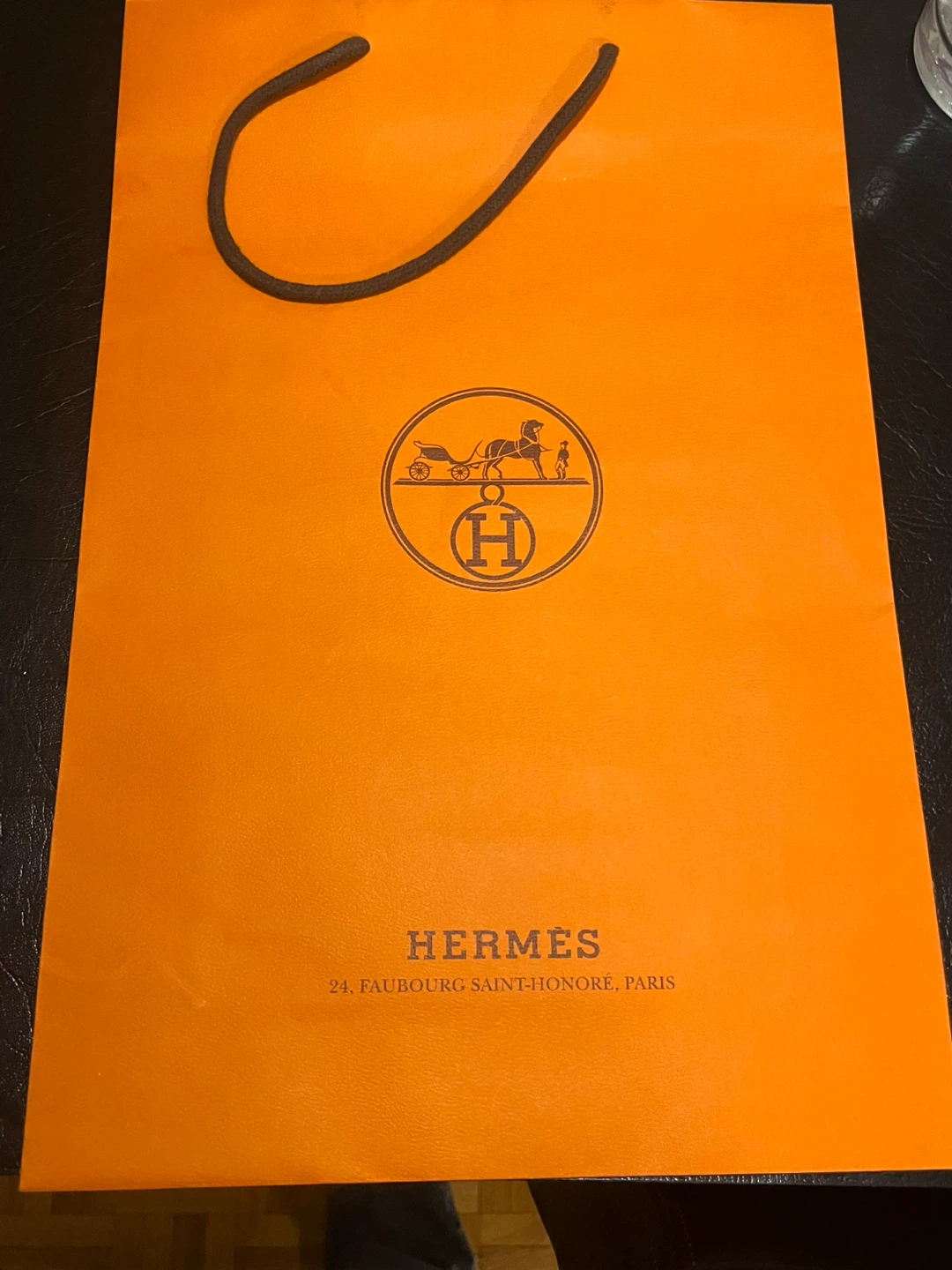 Measures 20” x 12” high-quality Hermès paper gift bag