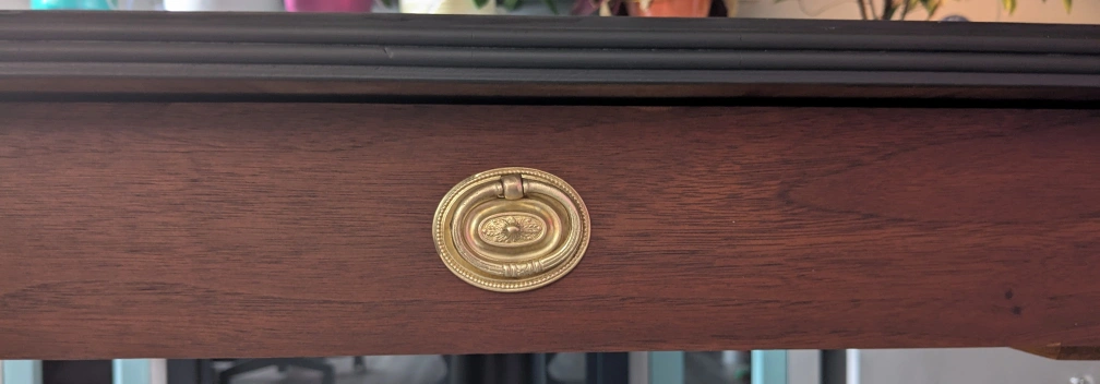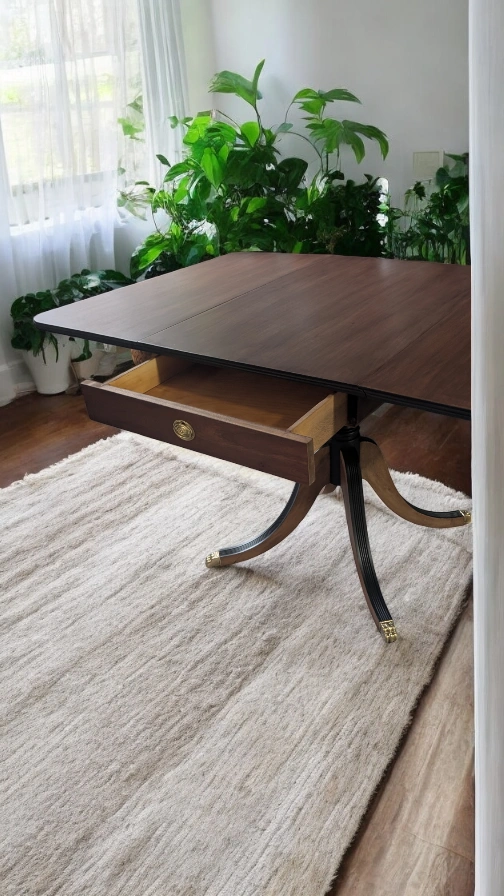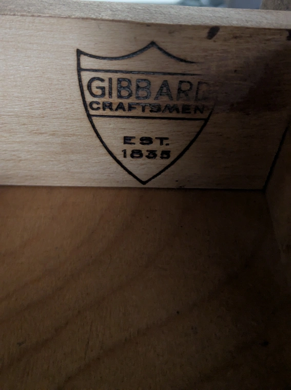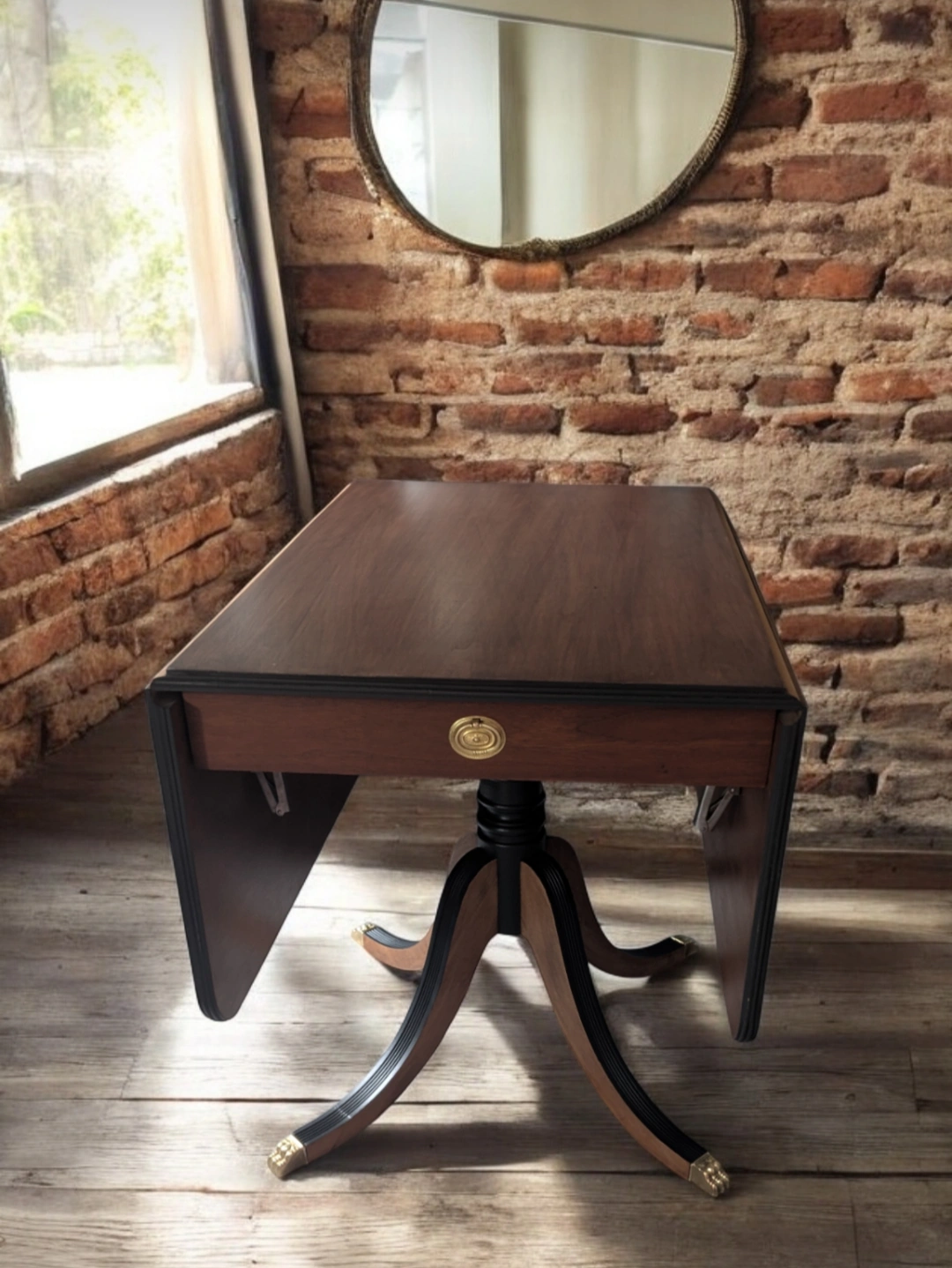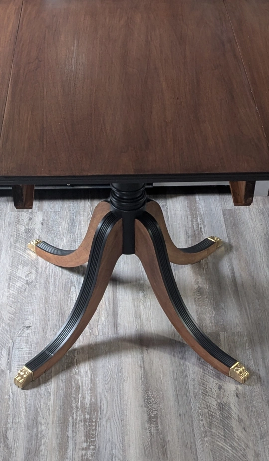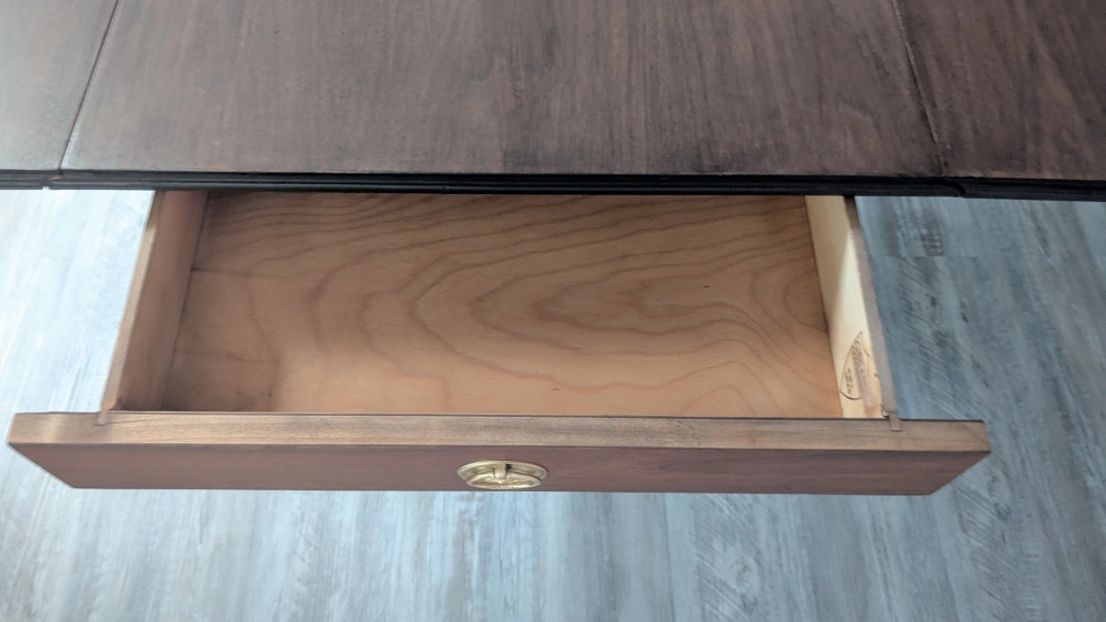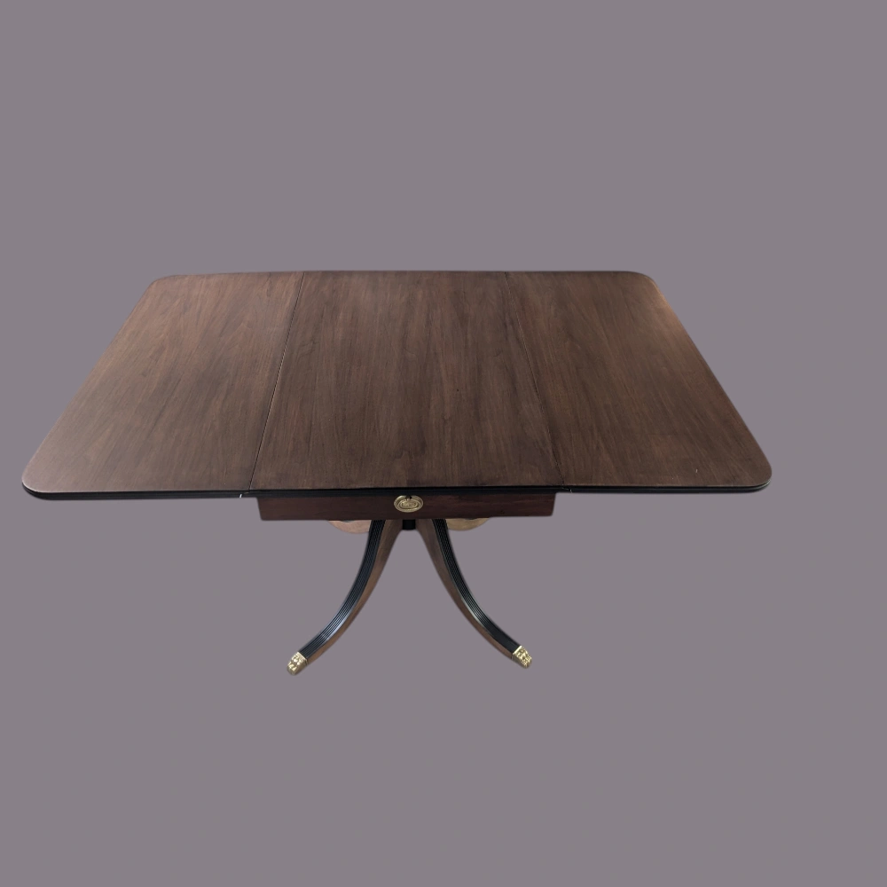 Vintage Duncan Phyfe (1940) style Drop Leaf Dining Table with drawer. Stamped Gibbard est. 1835.