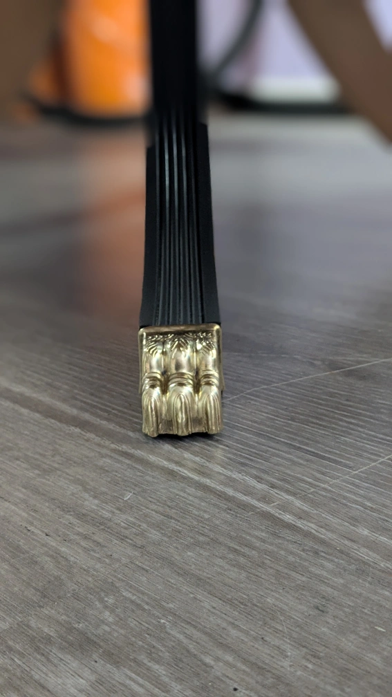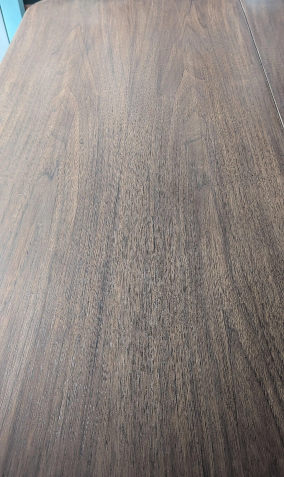 This exquisite piece has been thoroughly refinished and stained in Special Walnut with Fusion Cast Iron trim and detail on the legs. The table top is sealed and the wood nourished with Tung Oil to highlight the wood's natural elegance.