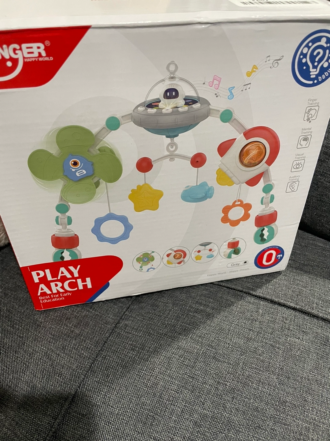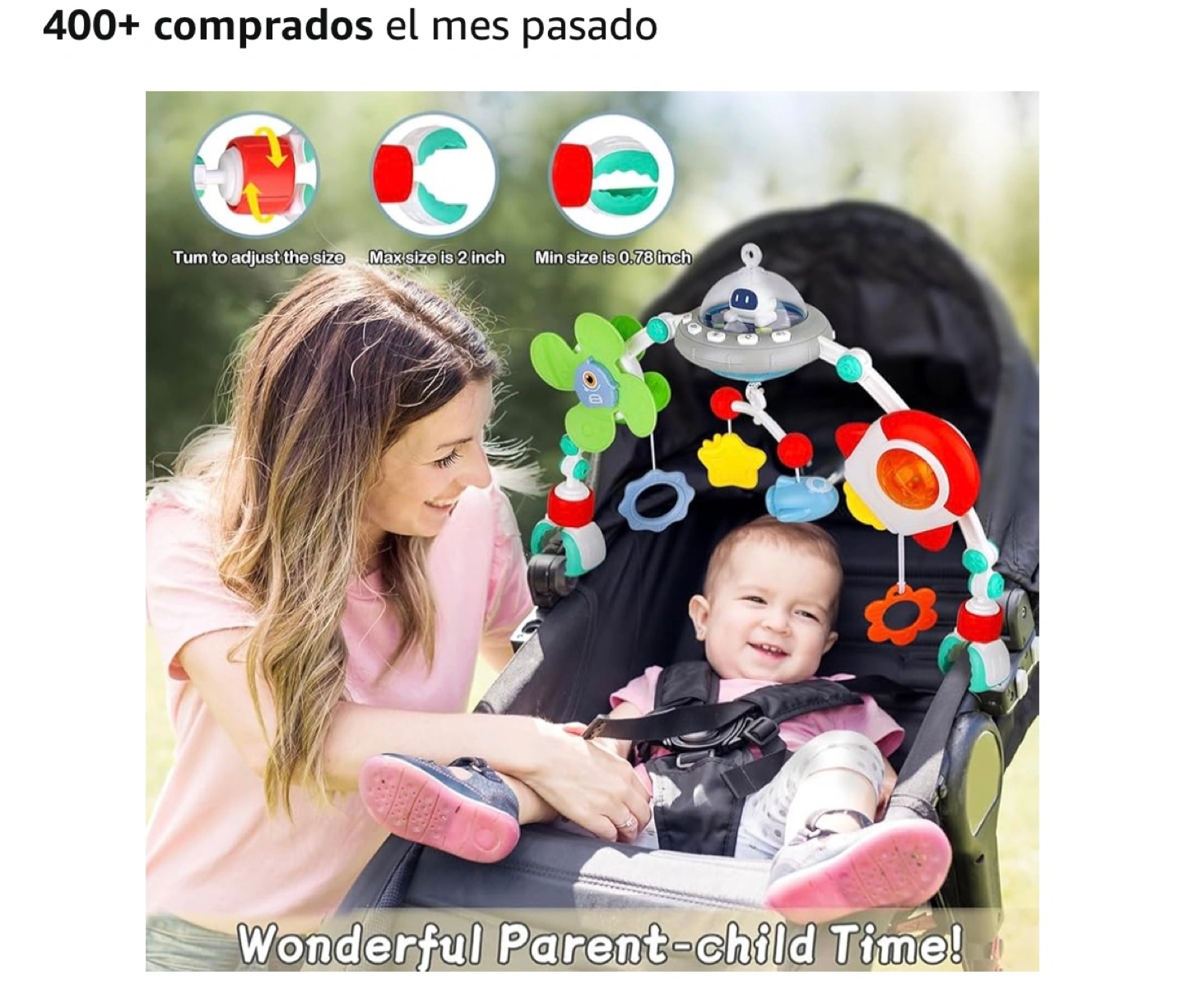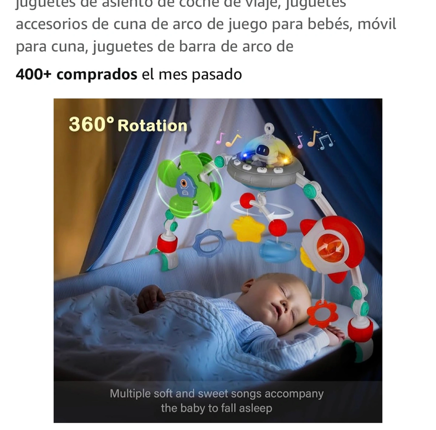 Adorable astronaut-themed mobile. Features soft lights, music, rotation, and volume control. Attaches easily to cribs, strollers, and car seats. Great for soothing babies.