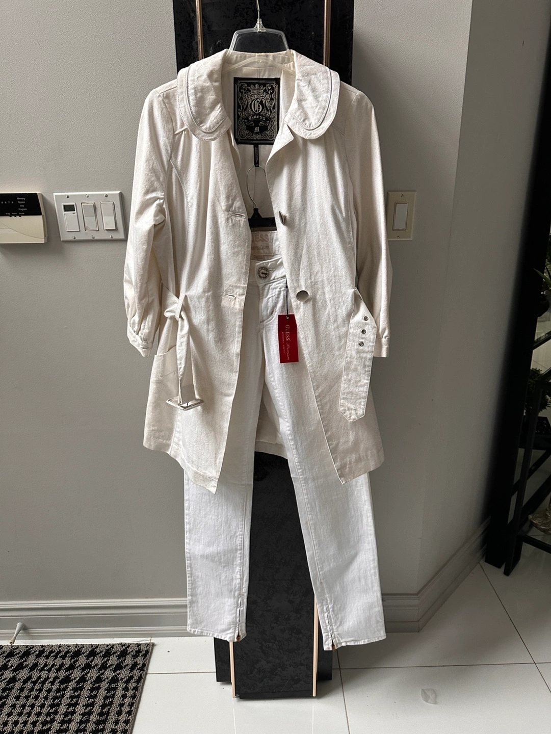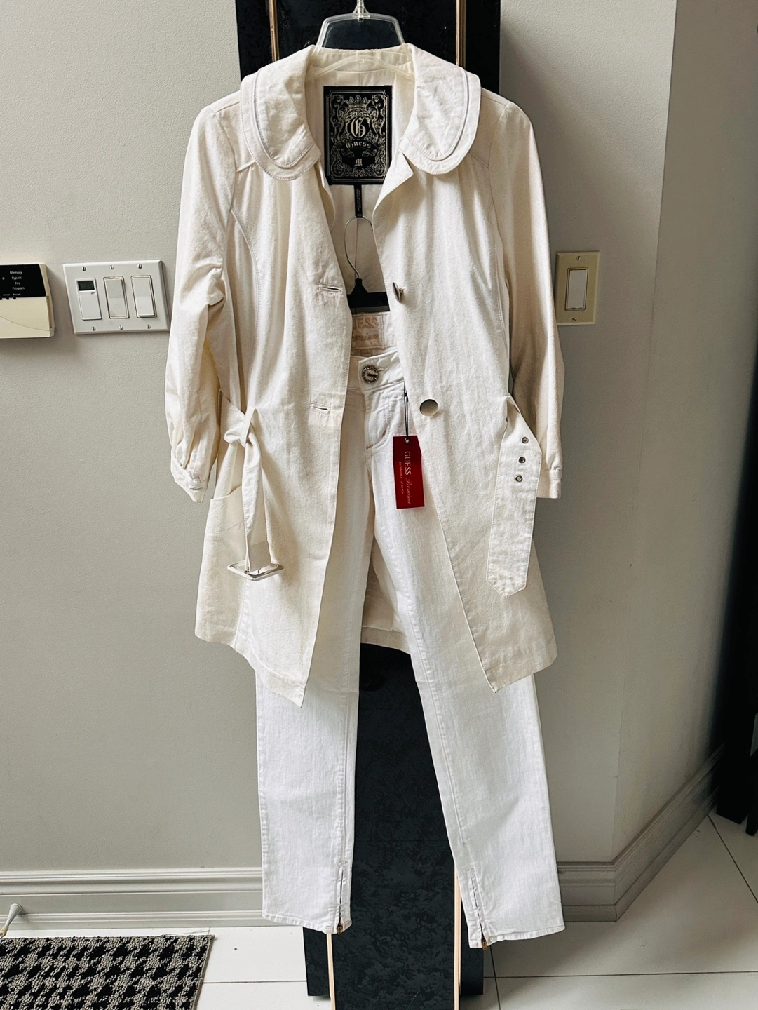 Guess Women's Off-White Trench Coat and Jeans Set