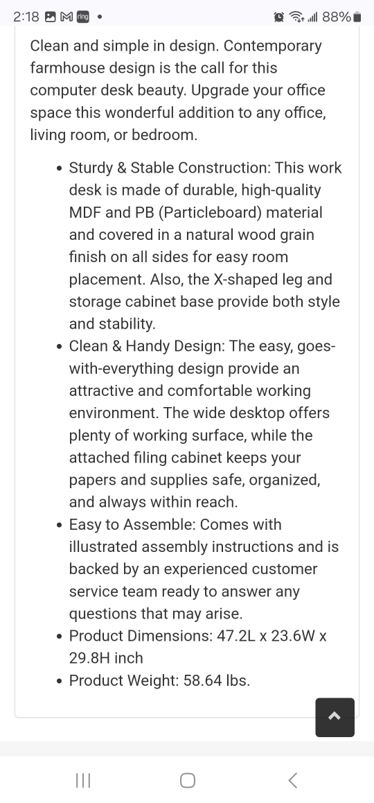 47" Farmhouse Computer Desk with Cabinet see pics