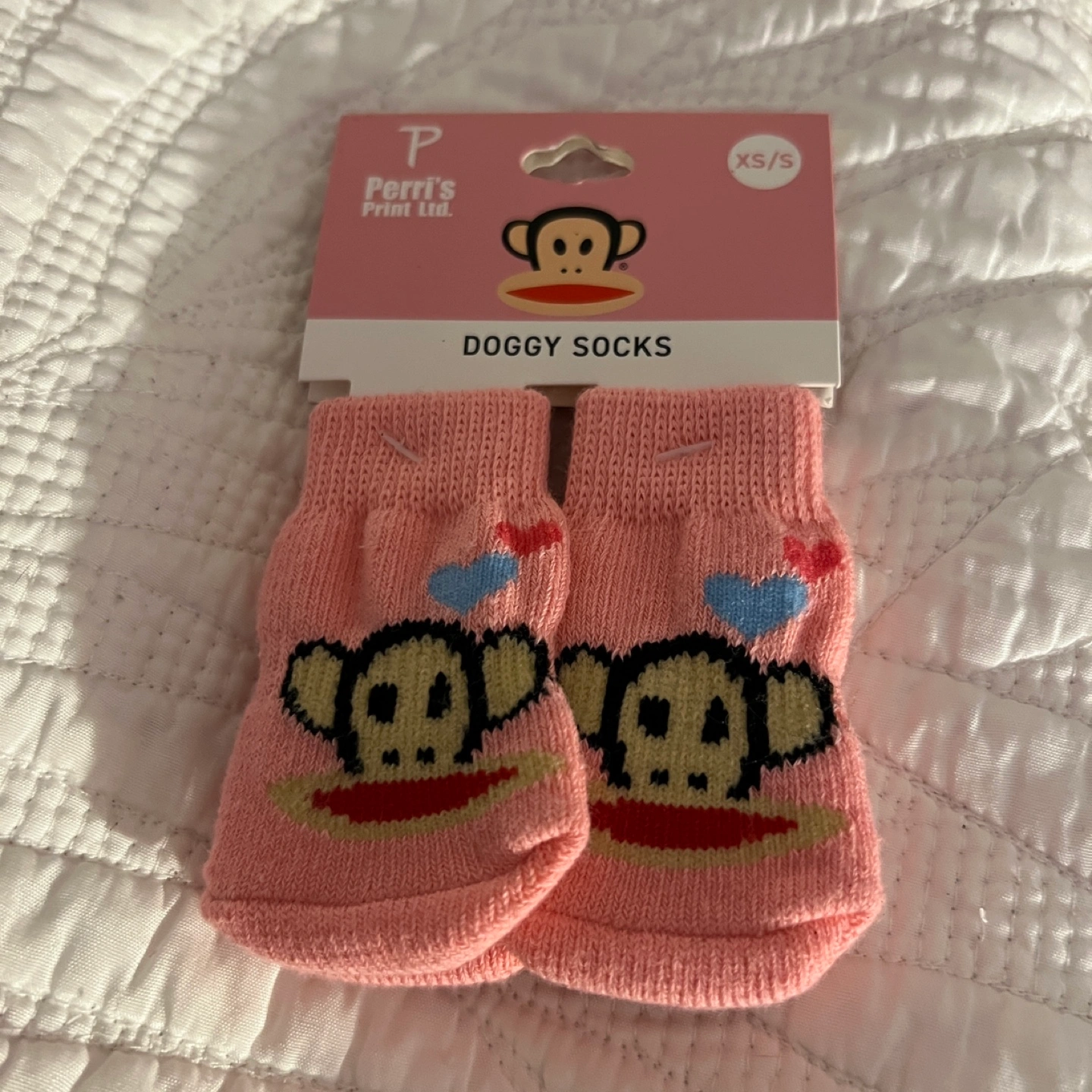 Adorable pink doggy socks. XS/S size. Features Paul Frank monkey design. New with tags.