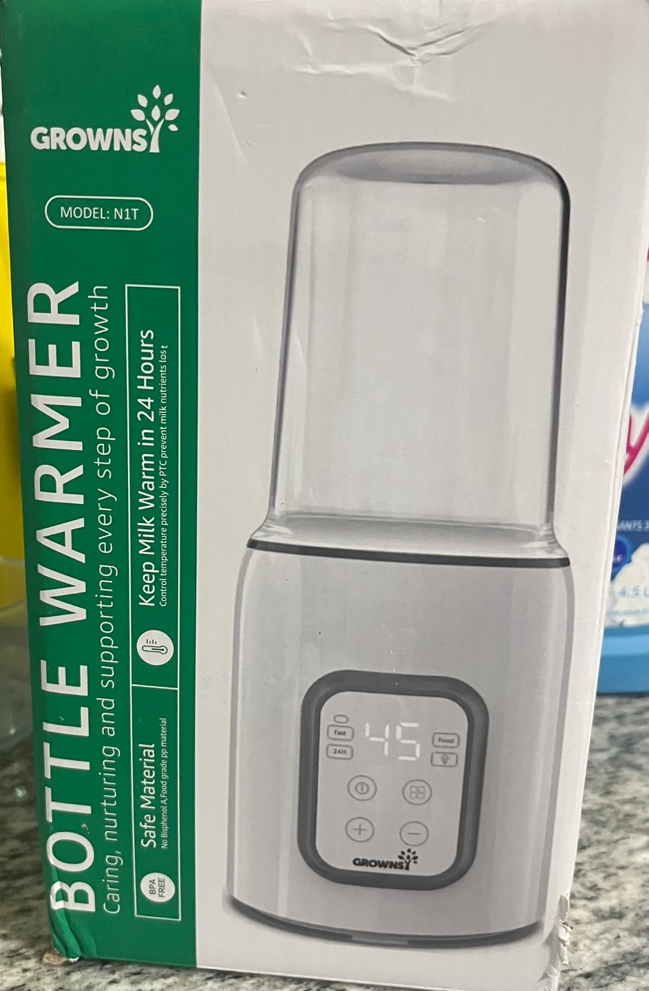 New bottle warmer. Keeps milk warm for 24 hours. Safe material, BPA free. Digital control panel.