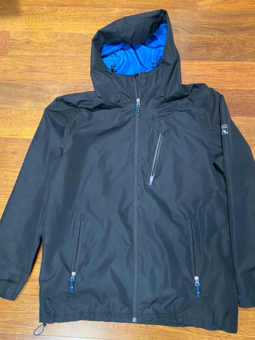 Men's black hooded jacket. Size XL/TG. Features zipper closure and pockets. Great for layering in Spring or Fall. In excellent condition.