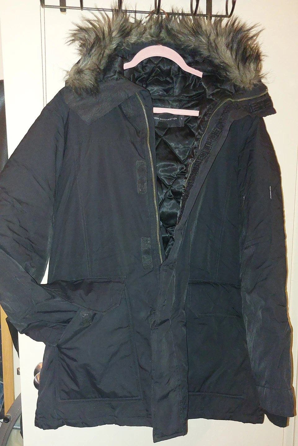 Men's French Connection Fuax Fur Lined Hood Winter Jacket Size Large.