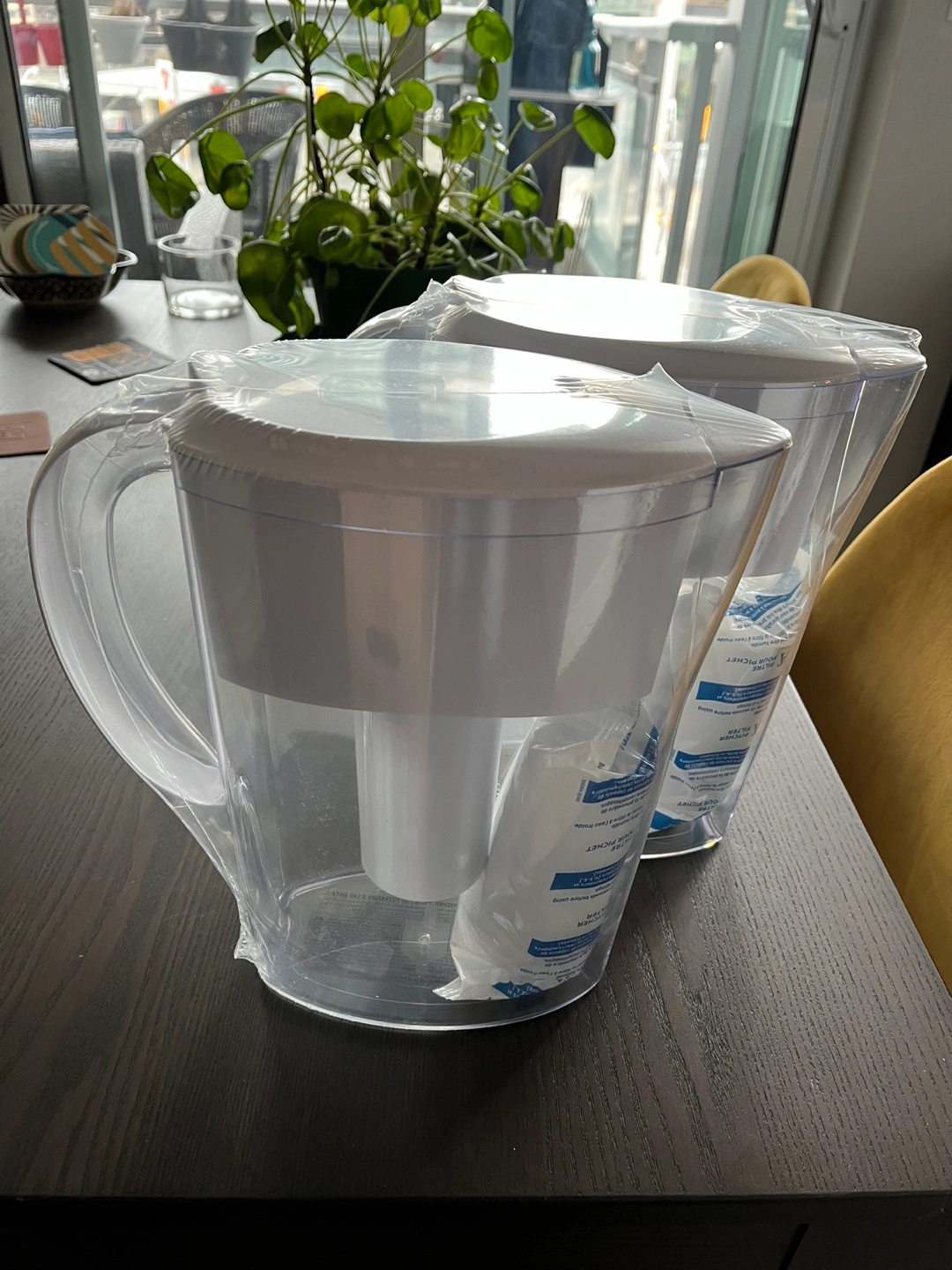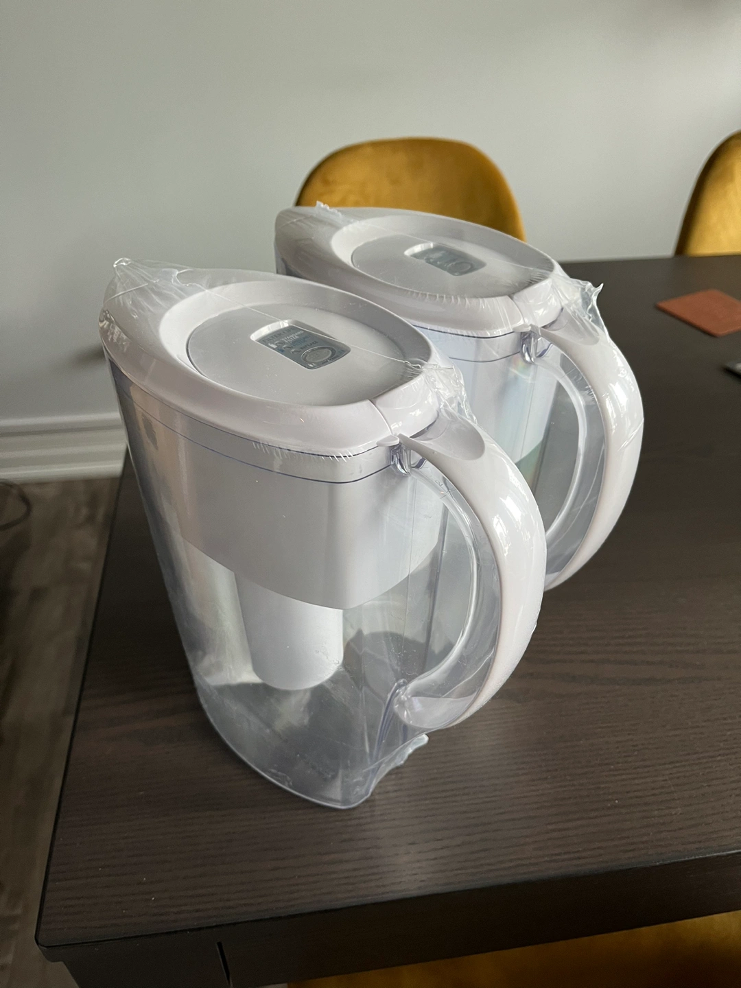 Still sealed in plastic wrap, found in our storage and now use the Kirkland brand pitcher which is incompatible. Take both for $10