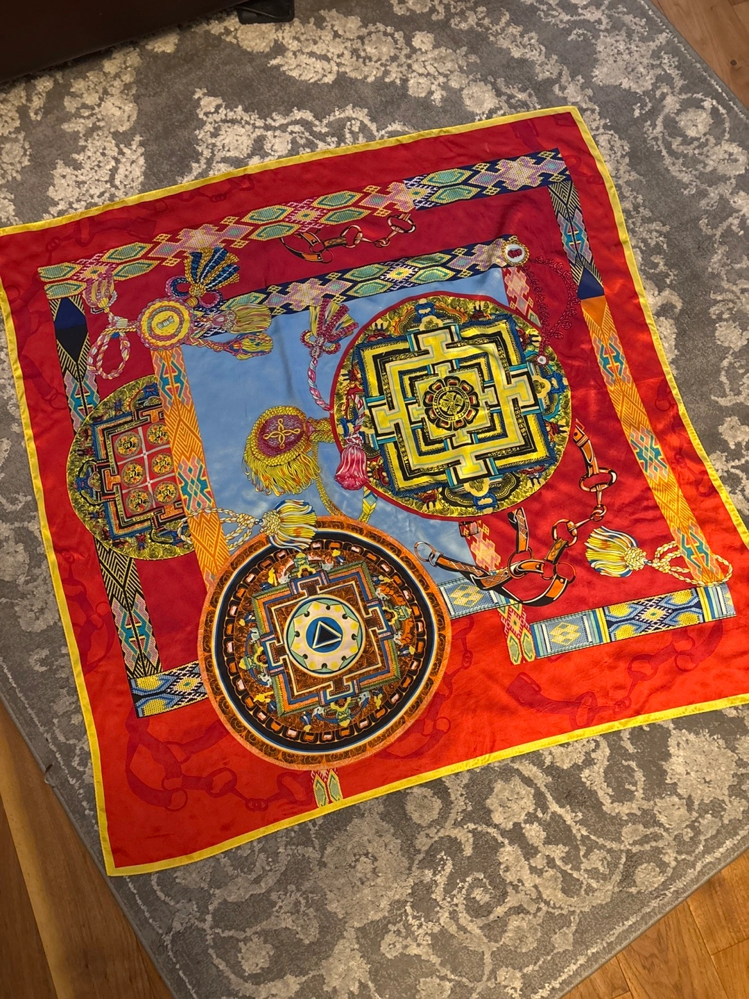 Vibrant Silk Scarf with Mandala Design