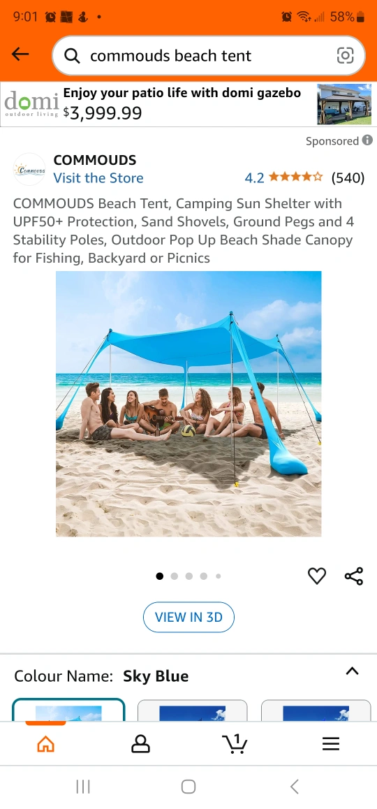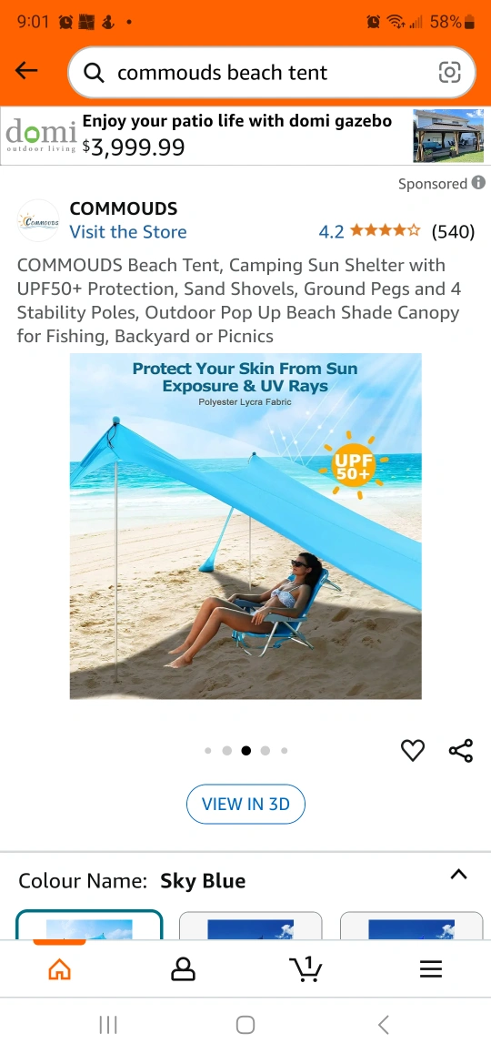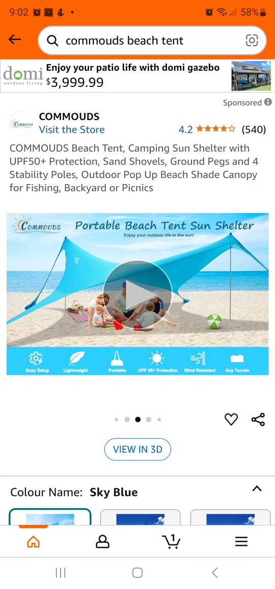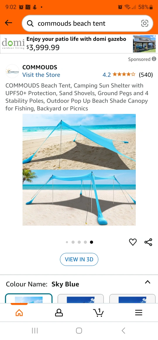 Camping sun shelter. UPF50+ protection. Includes sand shovels, ground pegs, and 4 stability poles. Great for fishing, backyard use, or picnics. Easy setup, lightweight, portable, wind resistant, any terrain.