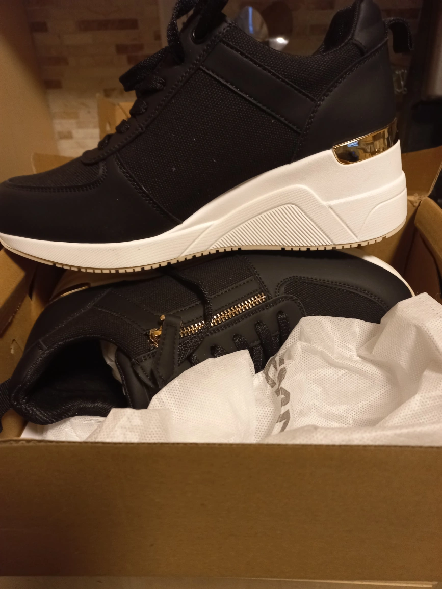 Wedge sneakers. Black colour. Size 8.5. Gold zipper detail. New in box.