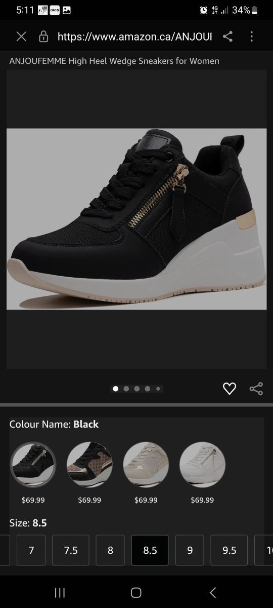 ANJOUFEMME Women's Black High Heel Wedge Sneakers - Size 8.5