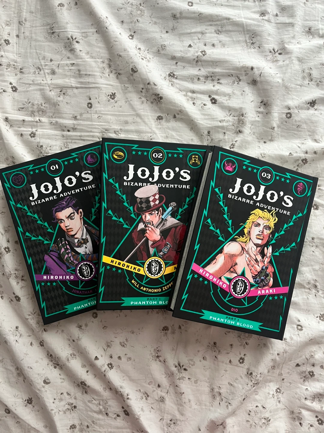 Three volumes of the JoJo's Bizarre Adventure manga, Part 1: Phantom Blood. This set includes volumes 1, 2, and 3.