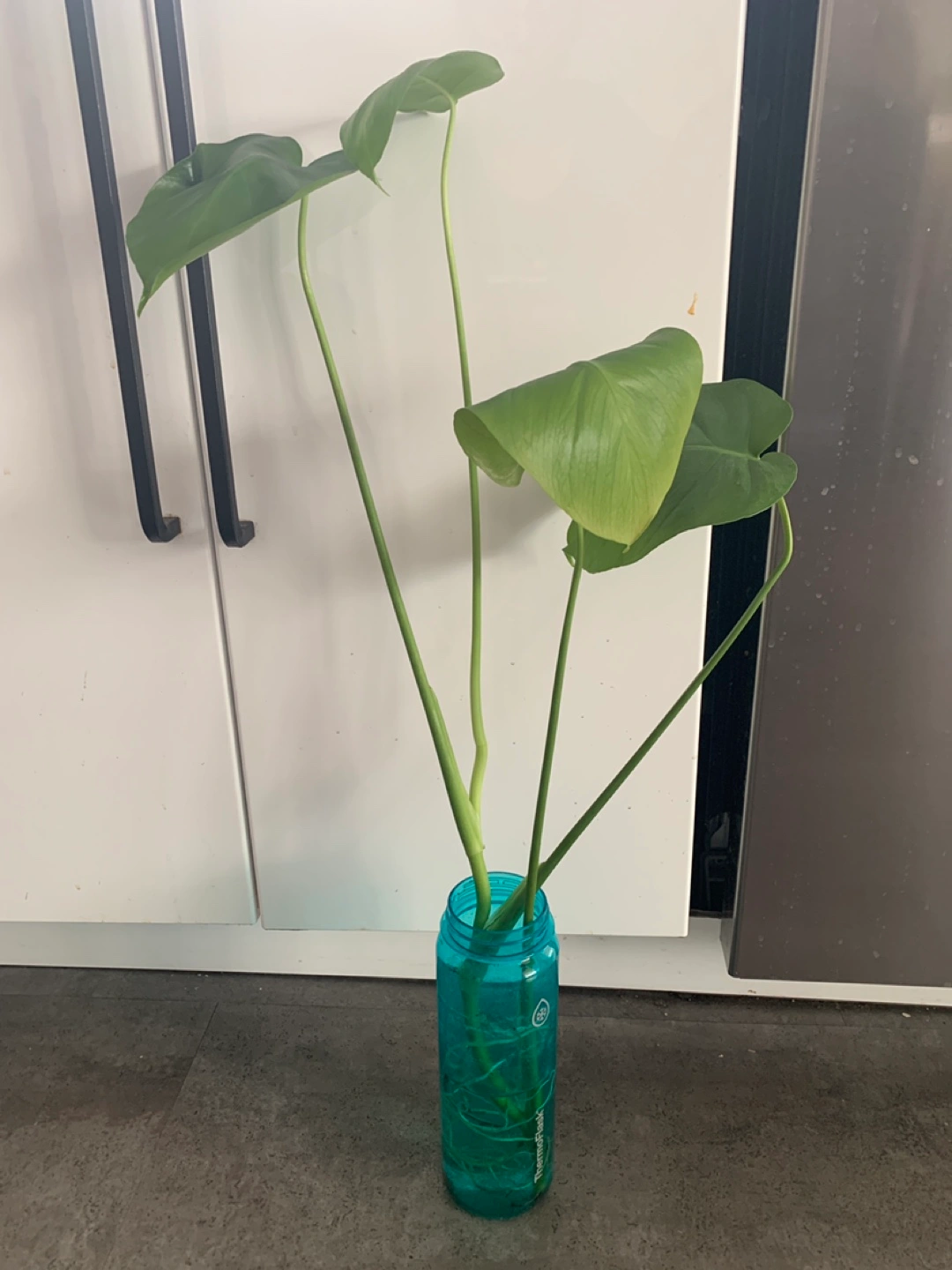 Healthy Monstera deliciosa cutting. Rooted in water. Ready to plant it in your fave’s planter. Great addition to your plant collection.