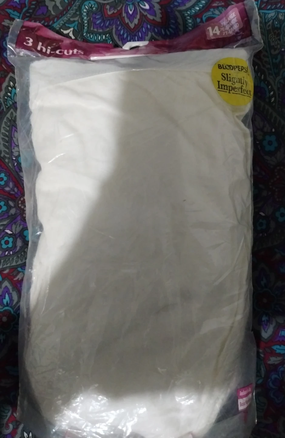 Pack of three "Slightly Imperfect" hi-cut panties from Blodepers. Size 7XL. White color.