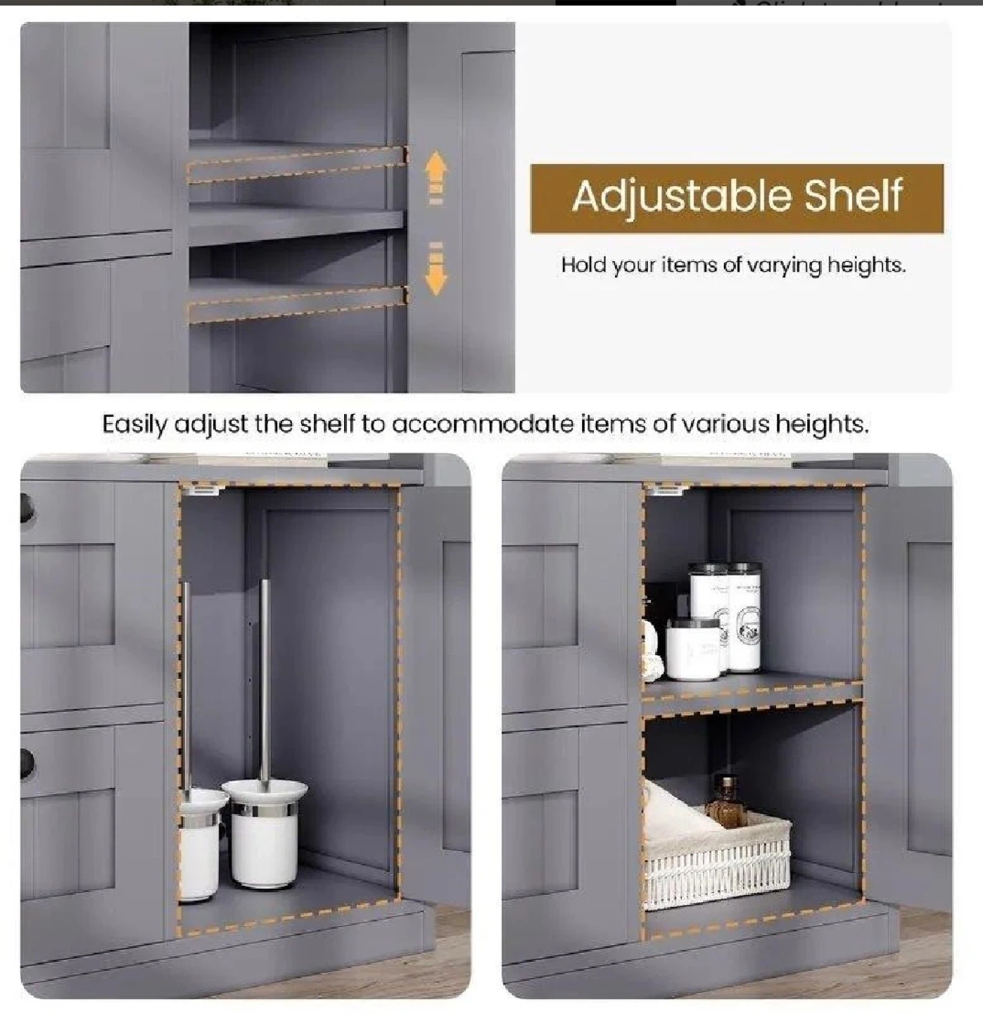 Grey Storage Cabinet with Adjustable Shelves