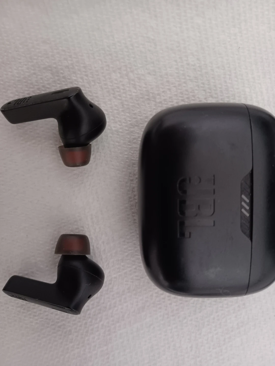JBL true wireless earbuds in black. Includes charging case. These earbuds offer a comfortable fit and good sound quality. Perfect for everyday listening and calls!trades are welcome..much more available..