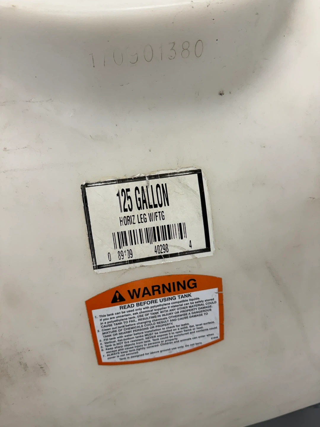 125 Gallon White Polyethylene Water Tank