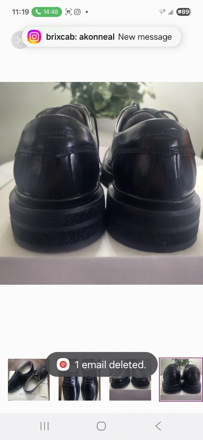 AllSaints Black Leather Derby Shoes Size 44