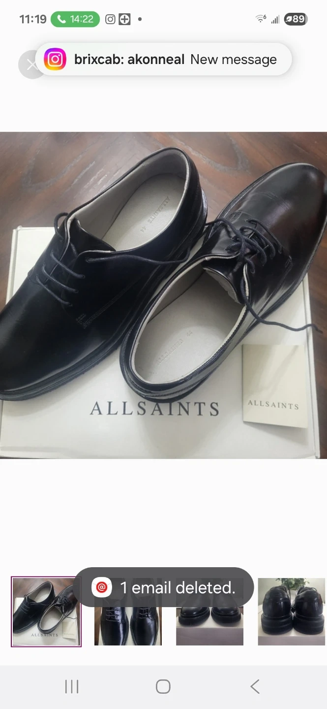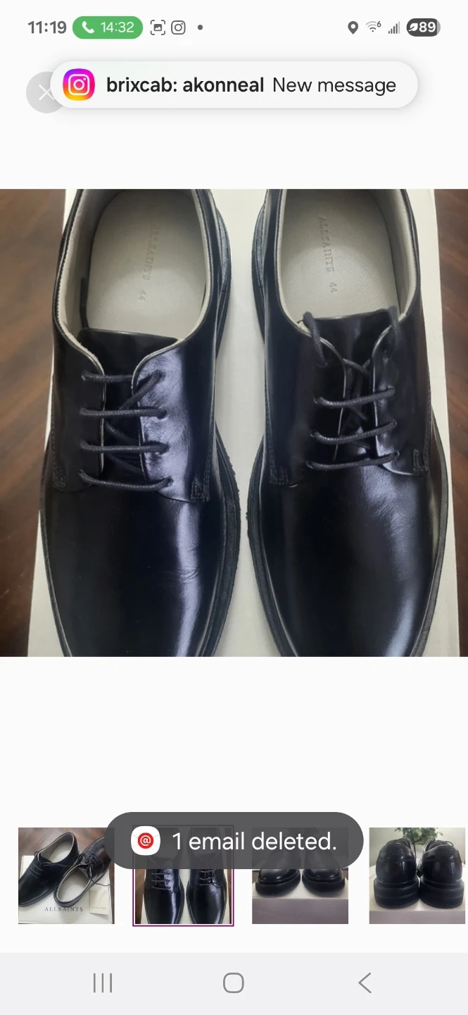 Classic black leather Derby shoes from AllSaints. Made in Italy. Original box included.
