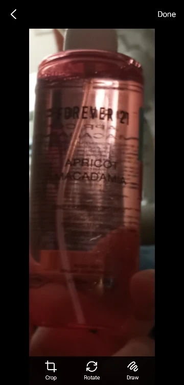 This is a Forever 21 body mist with apricot and macadamia scents. The bottle is rose gold coloured and has a spray top.missing the spray part