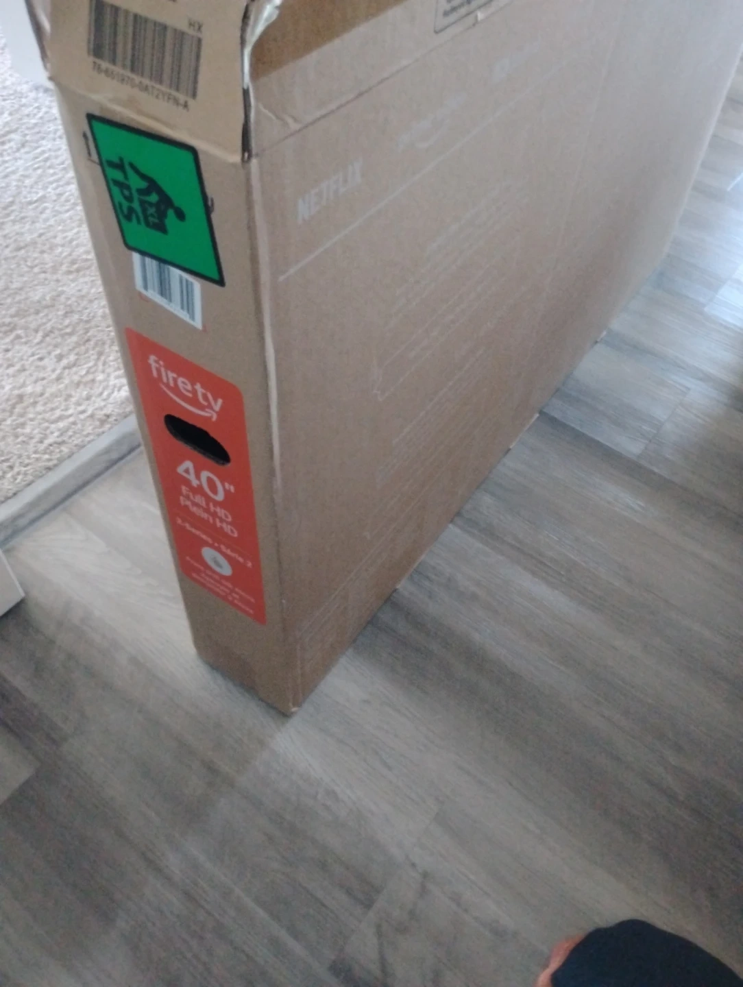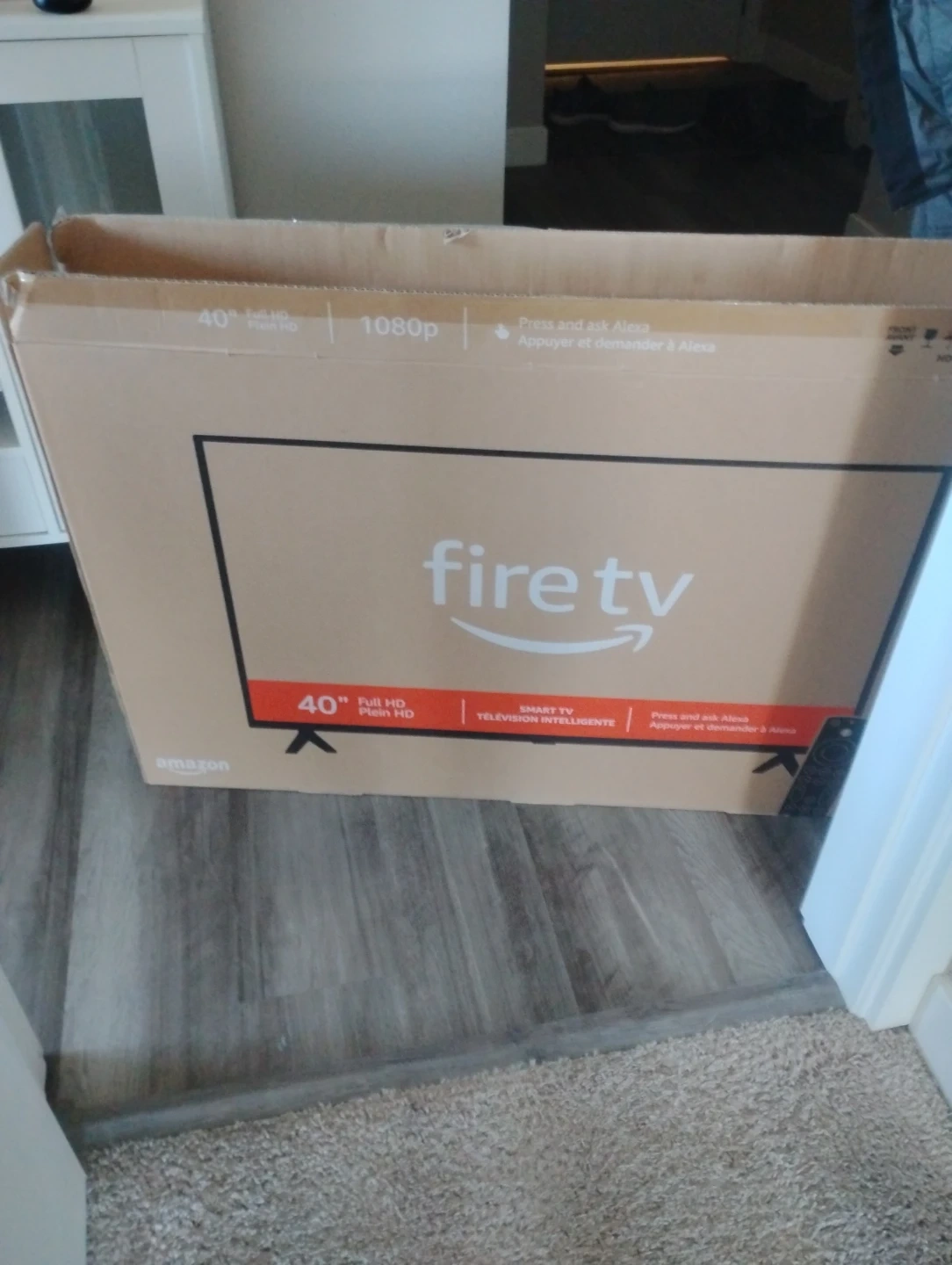 Pretty much brand new. Used it for 3 weeks while out of town. Amazon Fire TV, 40-inch, 2-Series. It's a Full HD smart TV. The box is included