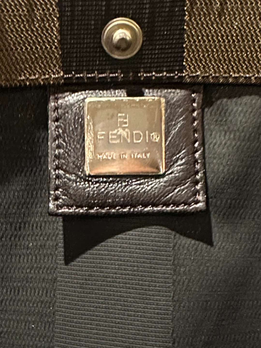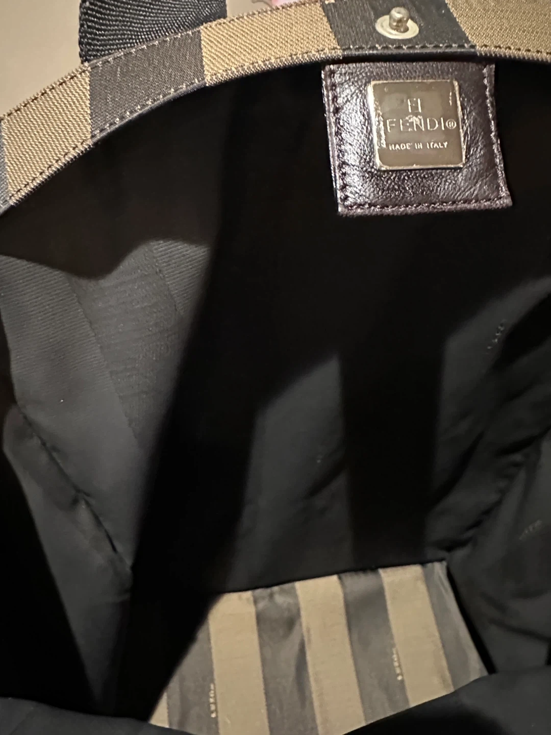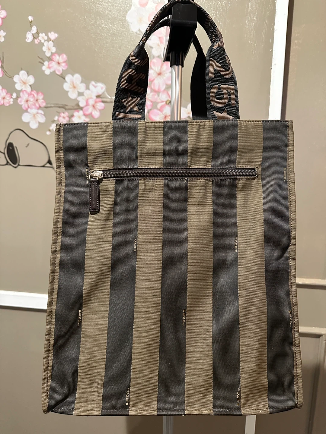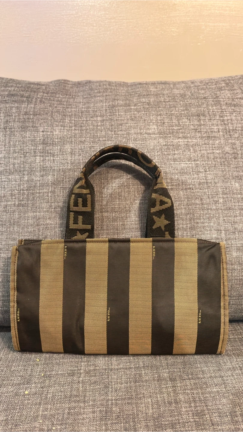 This is a Fendi tote bag with the signature striped pattern. Made in Italy. It's a stylish accessory for everyday use.