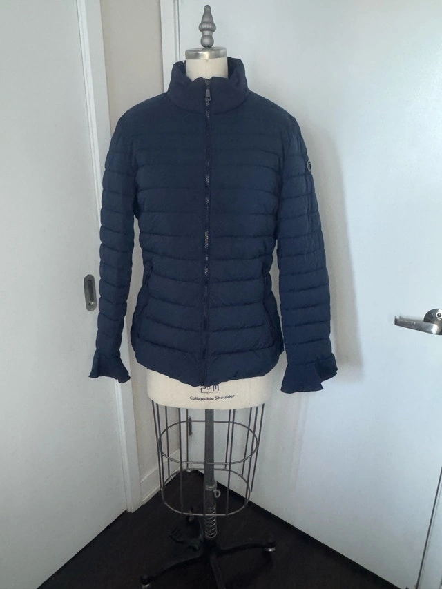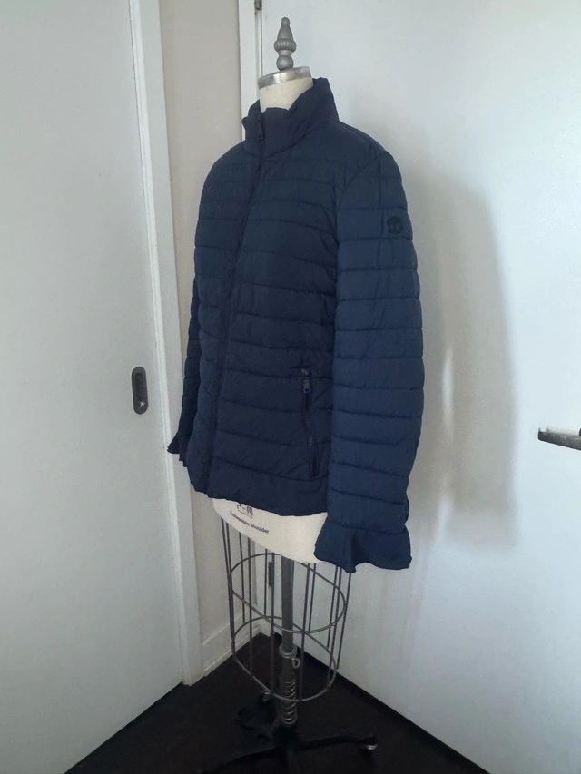 This TAHARI jacket in size Large has only been worn about three times. It's really pretty with flowing fabric on the sleeve cuffs. This is a great jacket for spring or fall. Pick up in the lobby of my condo, located in Scarborough at Finch and McCowan.