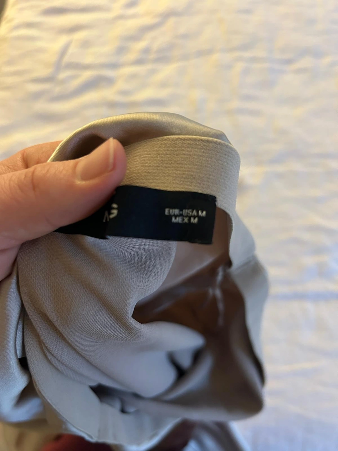 Size Medium. Flowy fabric in beige colour. Satin. Midi design. Straight design. Elastic band. Festival Season. Party and events collection. Office looks.