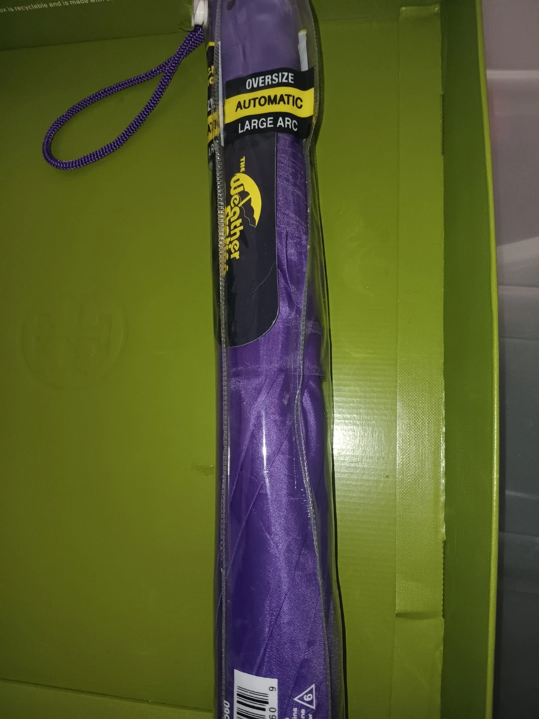 Oversize automatic umbrella. Large arc design for extra coverage. Purple color.