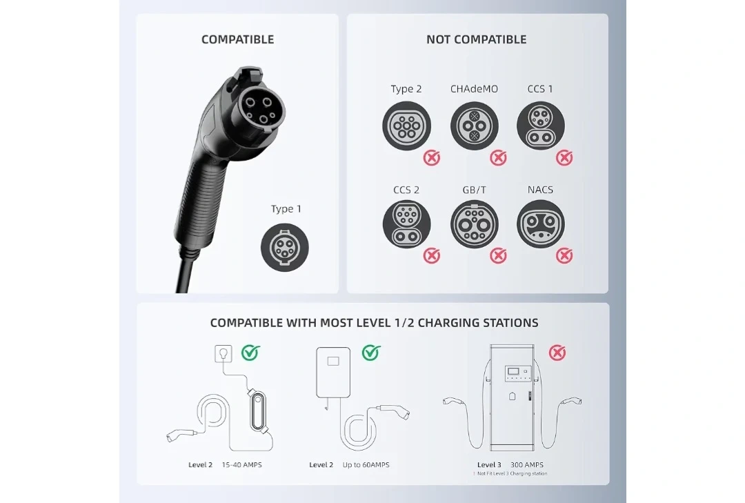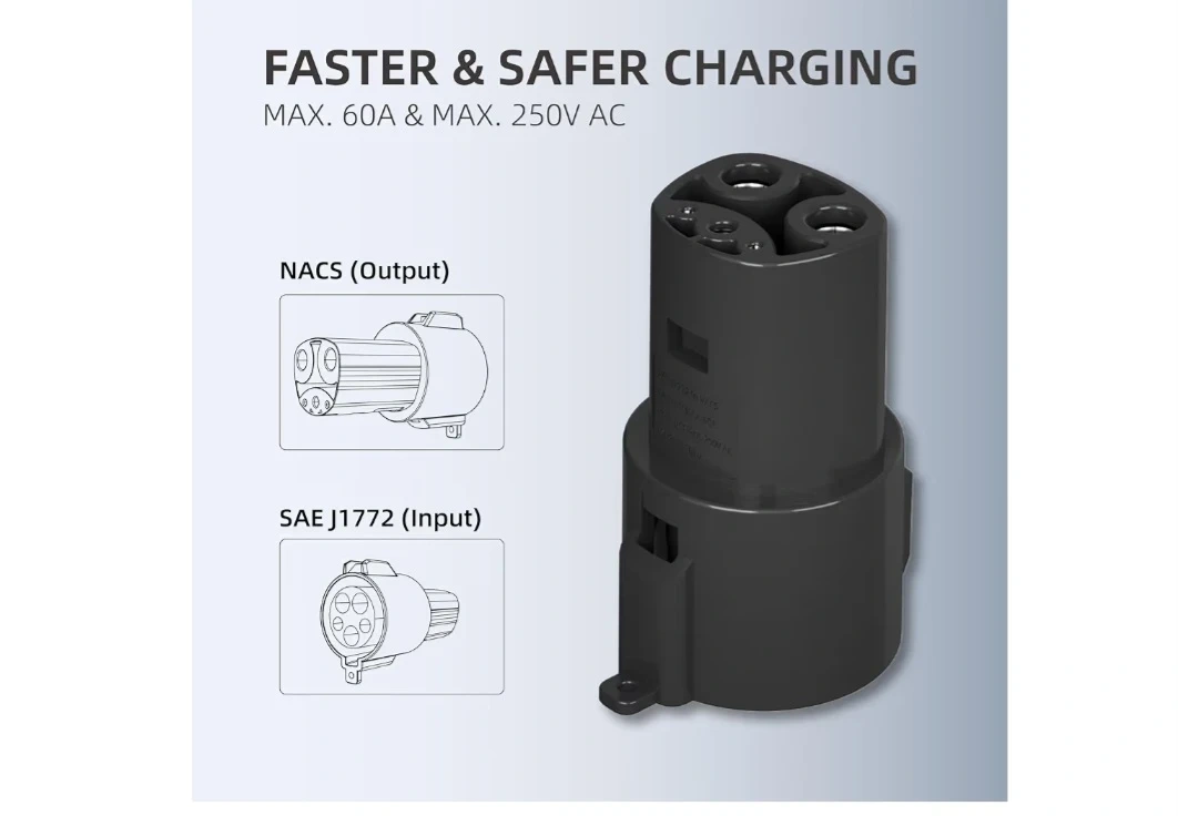 Fast Charging Performance: Enjoy efficient charging with our SAE J1772(T1) to Tesla(NACS) adapter. It supports up to 60A of current and works at 110V-240V, ensuring your Tesla charges quickly and safely.
