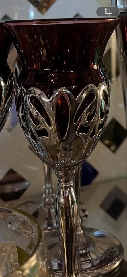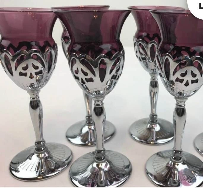Farber Bros Krome Kraft Barware Set - 5 Amethyst Wine Glasses &