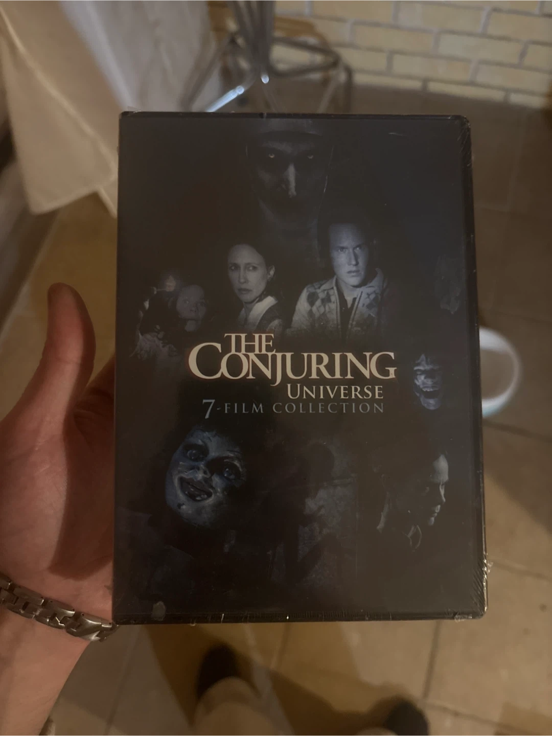 This is The Conjuring Universe 7-Film Collection DVD box set. It includes all seven films from the popular horror franchise. These discs are ready for movie nights!