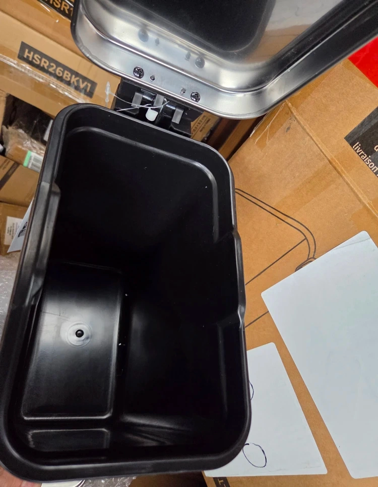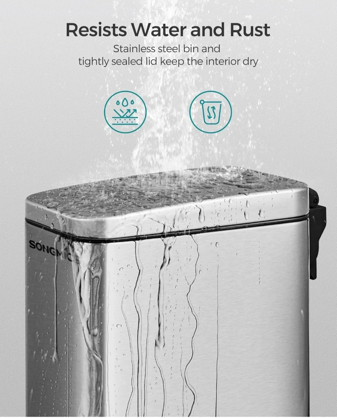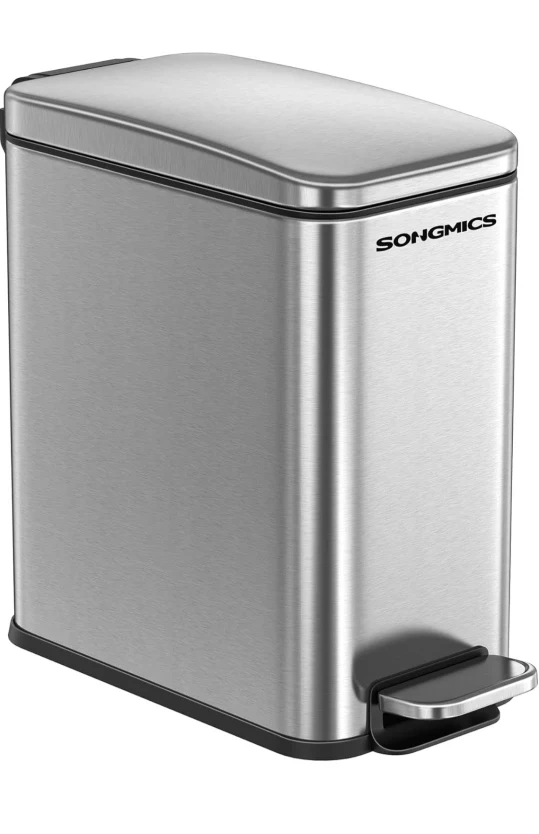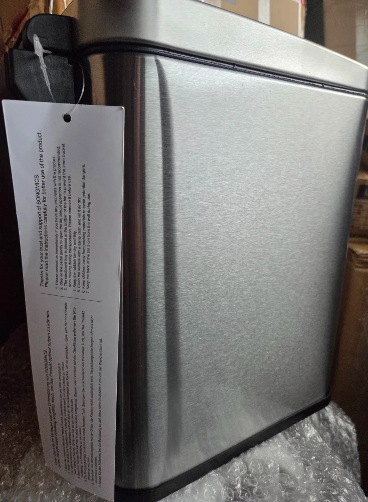 There are a few scratches, see the photo. SONGMICS Bathroom Trash Can, Small Trash Bin with Lid, Slim for Small Spaces, Stainless Steel Garbage Can, Soft Close, 1.3 Gallon (5 L) Silver ULTB560E05