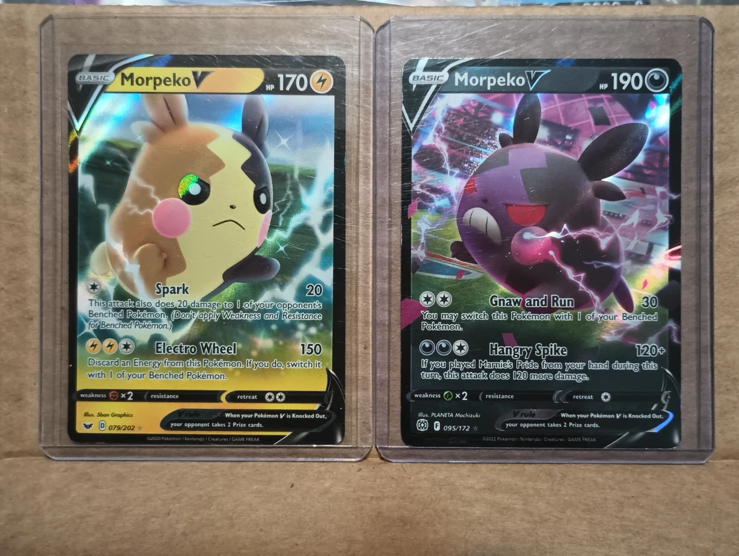 Buy & SellPokemon Morpeko V Trading Cards (2) 079/202 & 095/172Pokemon Morpeko V Trading Cards (2) 079/202 & 095/172$6Two Pokemon trading cards featuring Morpeko V. One card is #079/202 with 170 HP and the other is #095/172 with 190 HP. Both are from the Pokemon Trading Card Game.WHERE TO MEET606View MapSELLERverifiedEMYRELHumboldt Park52638 reviews0 chats·1 favorites·19 viewsSEND CHAT TO SELLERHi EMYREL! I’m interested in your listing.Hi EMYREL! I’m interested in your listing.Get the Karrot app to chatSign In to chat