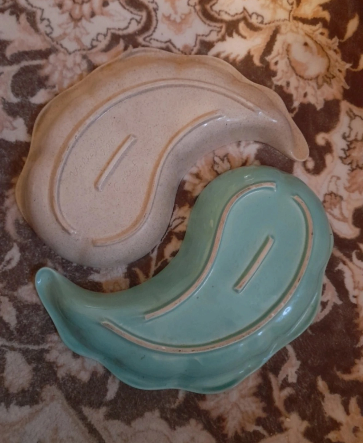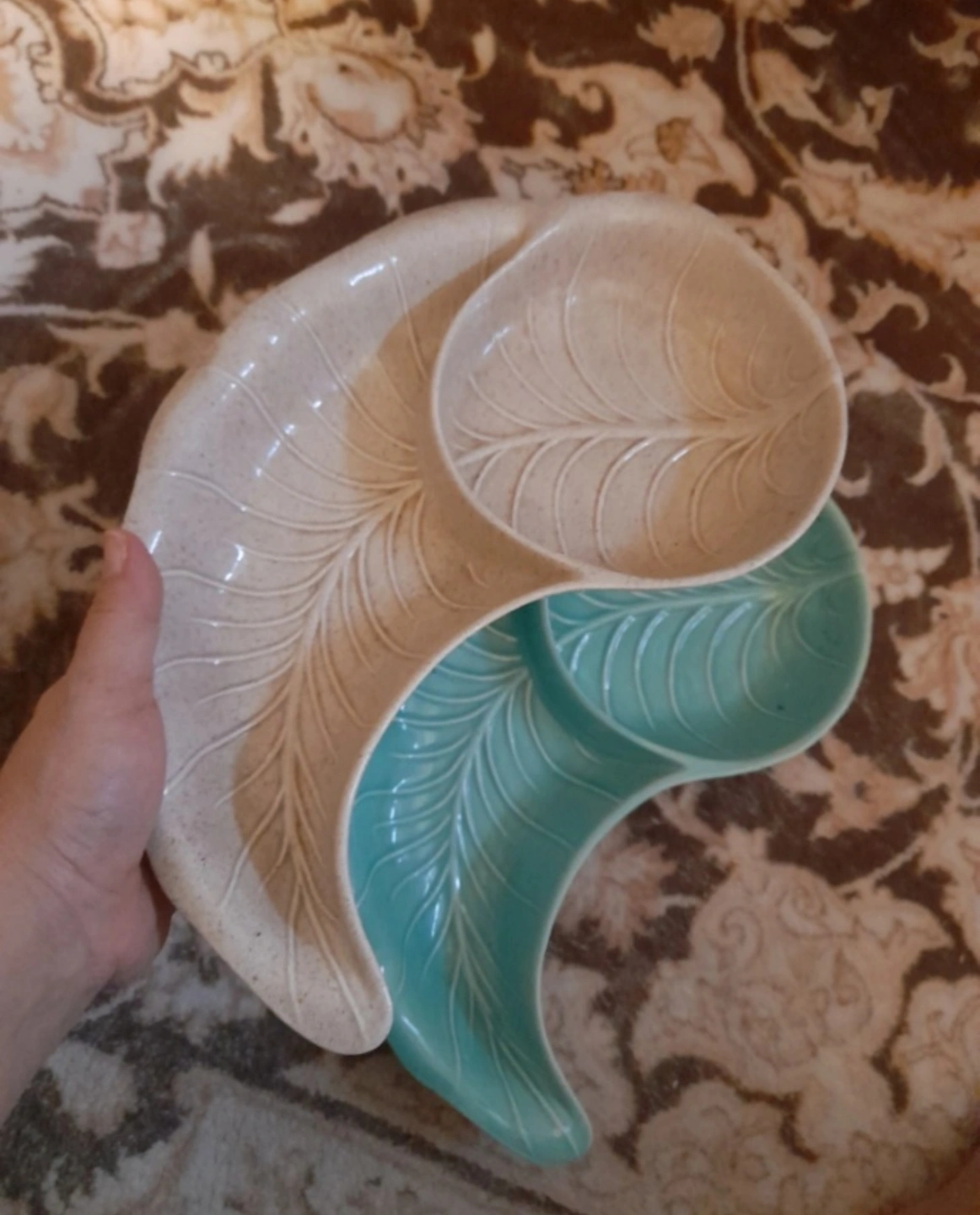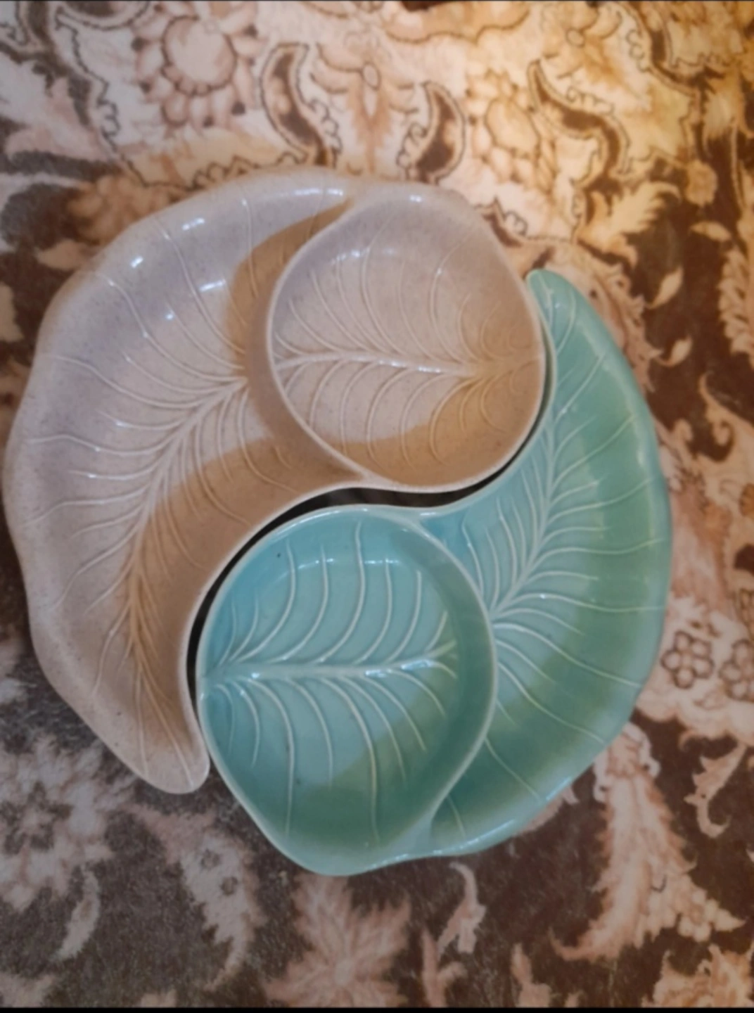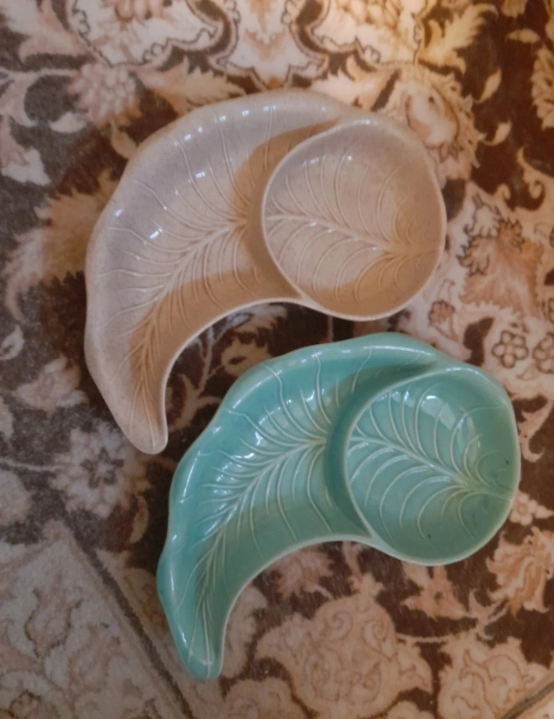 Vintage MCM CALIFORNIA POTTERY Leaf-Shaped Ceramic Tray Set