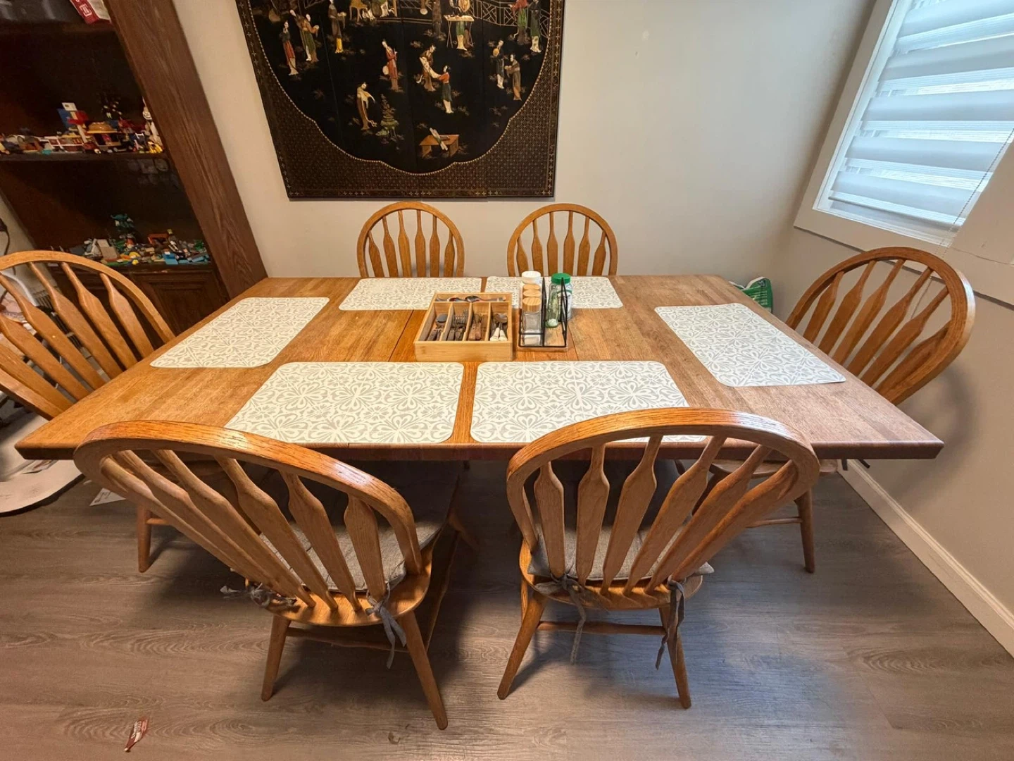 Buy & SellWooden Dining Table and Chairs SetWooden Dining Table and Chairs Set$105A sturdy wooden dining table with six matching chairs. It's perfect for family meals or gatherings!ConditionGoodWHERE TO MEETCheck LocationView MapSELLERJessicaWoodhaven100 reviews5 chats·3 favorites·157 viewsSEND CHAT TO SELLERHi Jessica! I’m interested in your listing.Hi Jessica! I’m interested in your listing.Get the Karrot app to chatSign In to chat