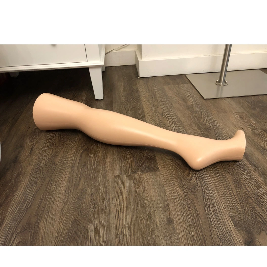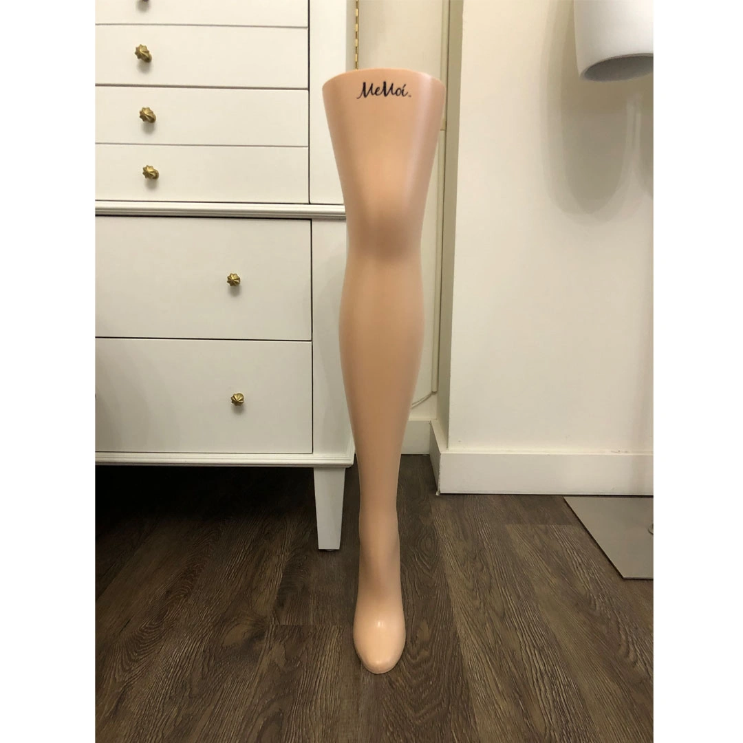 28 1/2in. female leg with raised heel and weighted toe for stability.